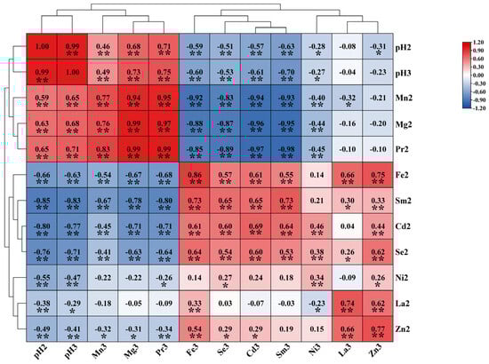 3.1.3. Correlation Analysis of Soil Element Content and pH