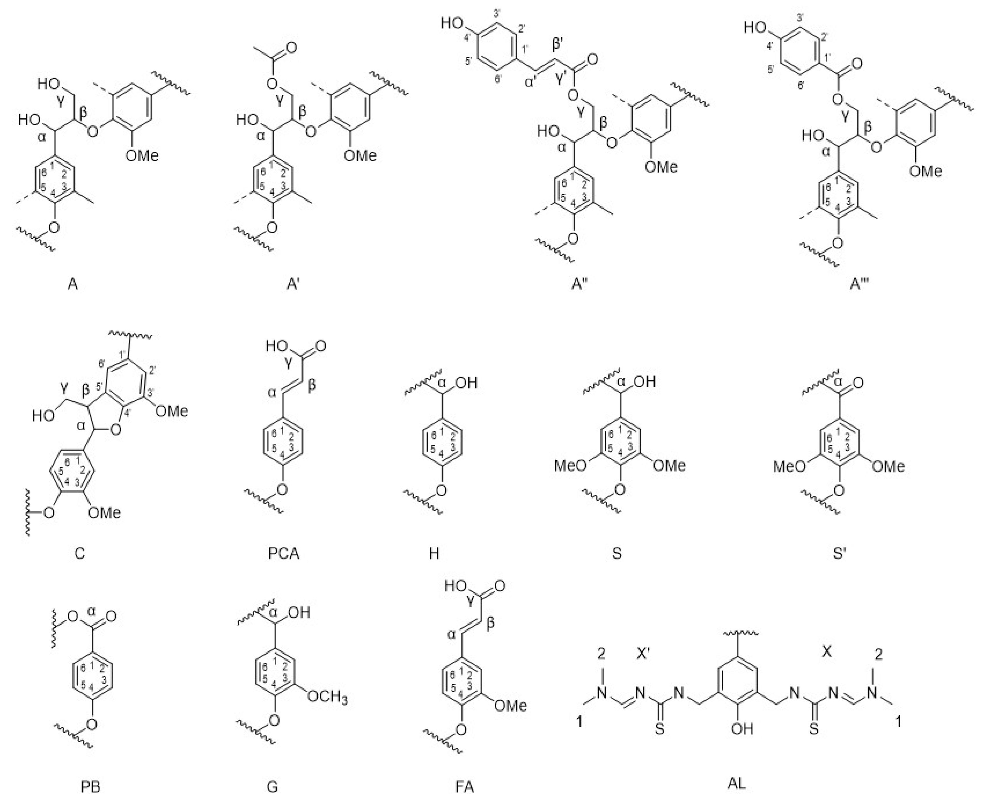 −1 indicate the guaiacyl and syringyl structural units [