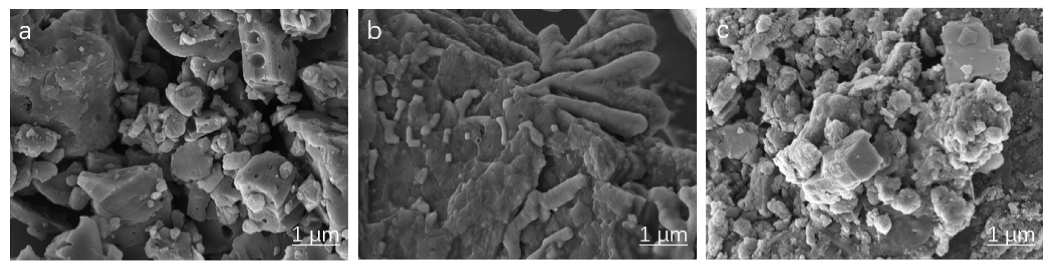 The adsorption experiments were performed using a batch method and were used to simulate the adsorption kinetics and adsorption isotherms of Cr (VI) by AL. All intermittent adsorption experiments were carried out in a constant temperature shaker. Various factors, such as pH, adsorbent dosage, temperature, initial Cr (VI) concentration, and contact time, were investigated with respect to Cr(VI) adsorption. Different weights of K2Cr2O7 were dissolved in deionized water to obtain the desired solutions of different concentrations of Cr (VI). The pH of the solution was adjusted with 1.0 M HCl or NaOH solution. The shaker was used to take 0.5 mL of each sample under the same speed conditions. Rotational speed: 180 ppm. The suspension was then centrifuged, and the solution was extracted using a 0.45 mm PTFE syringe filter. To reduce experimental error, three parallel adsorption experiments were performed, and the data given in the text are their average values.