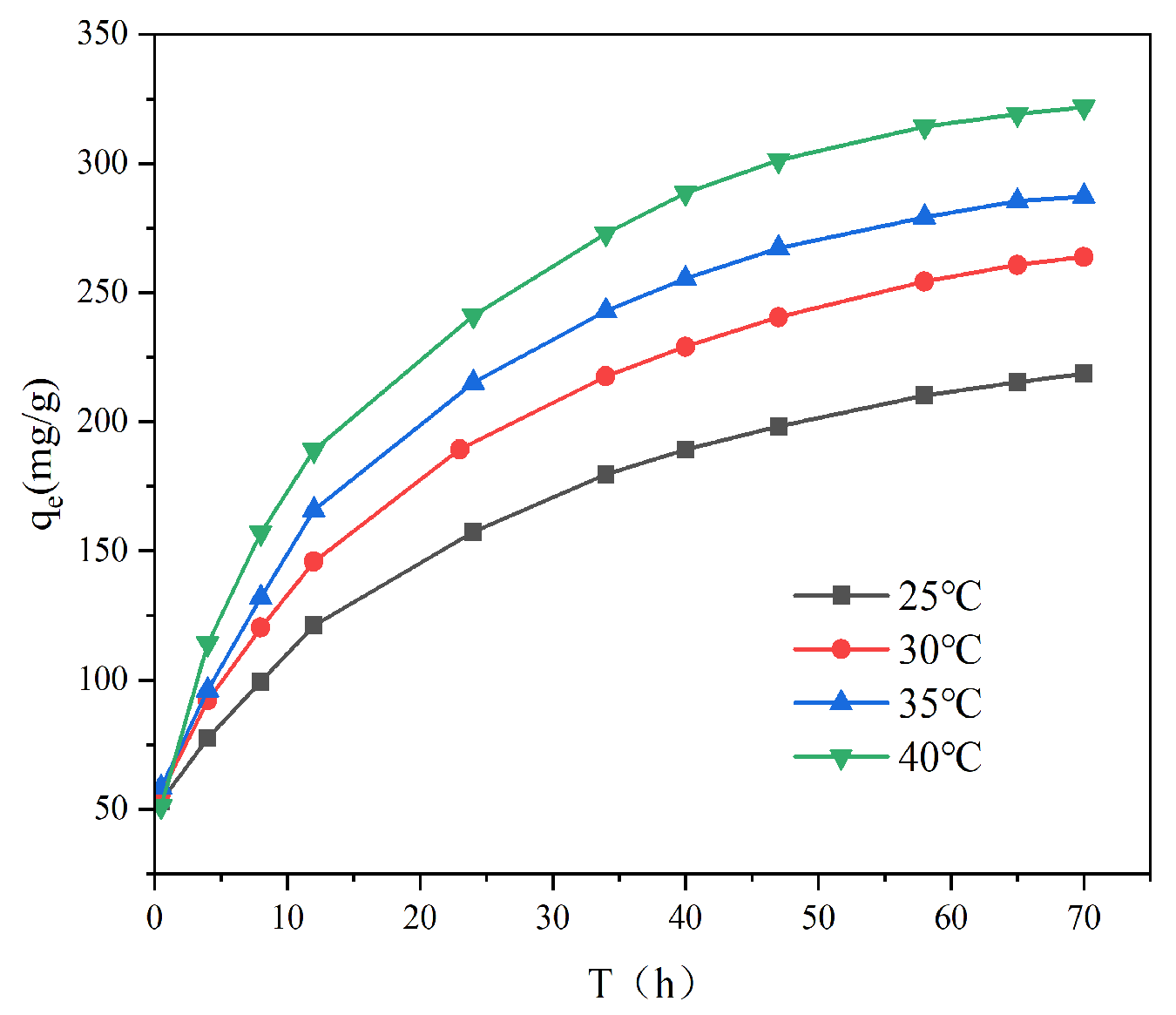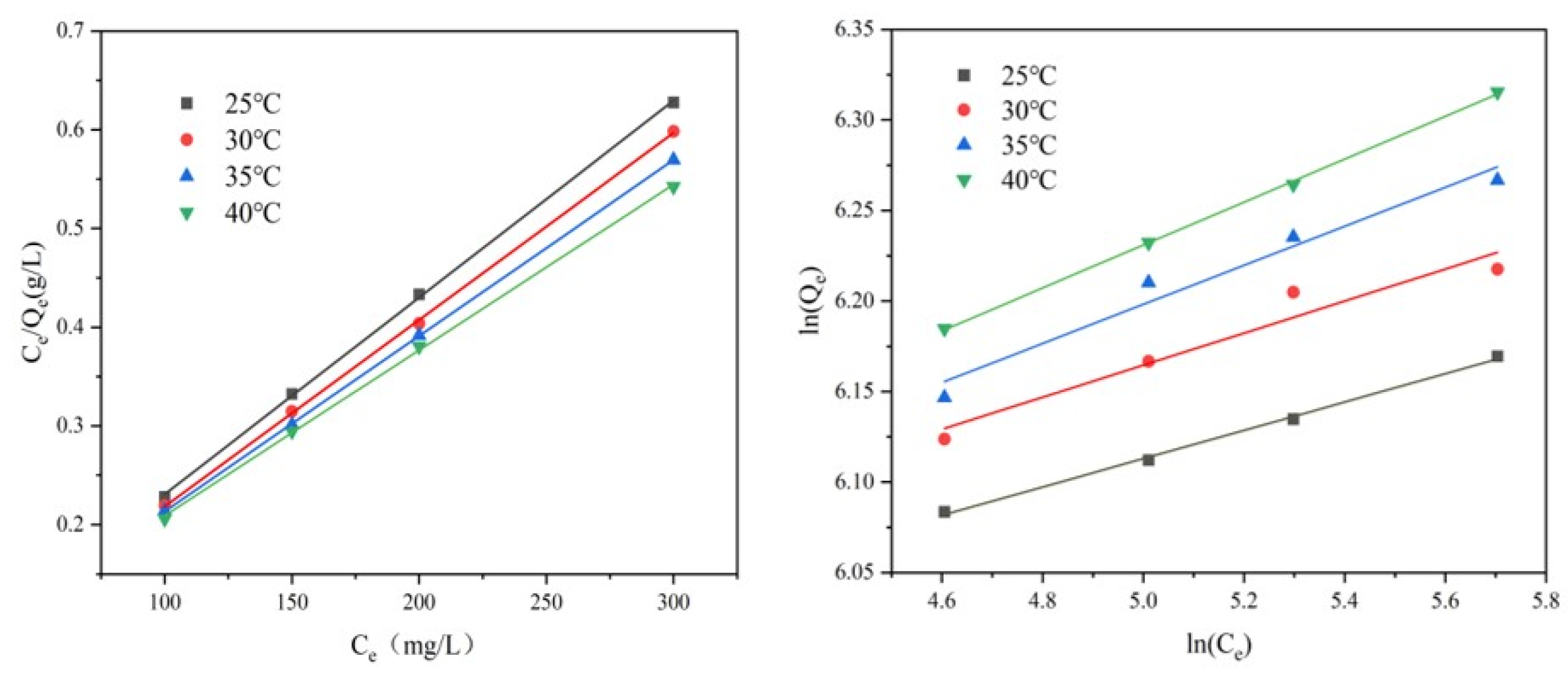 KL, the stronger the affinity between the adsorbent and the adsorbate. At 25, 30, 35, and 40 °C,