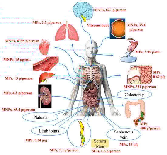 - Wu, P.; Lin, S.; Cao, G.; Wu, J.; Jin, H.; Wang, C.; Wong, M.H.; Yang, Z.; Cai, Z. Absorption, distribution, metabolism, excretion and toxicity of microplastics in the human body and health implications. J. Hazard. Mater. 2022, 437, 129361. [Google Scholar] [CrossRef]