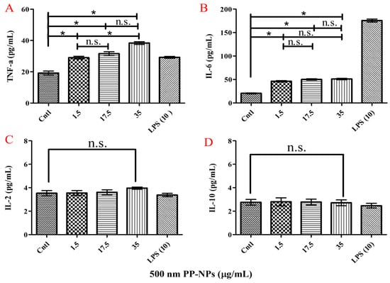 3.6. PP-NPs Induce Changes in Cytokines in HUVECs