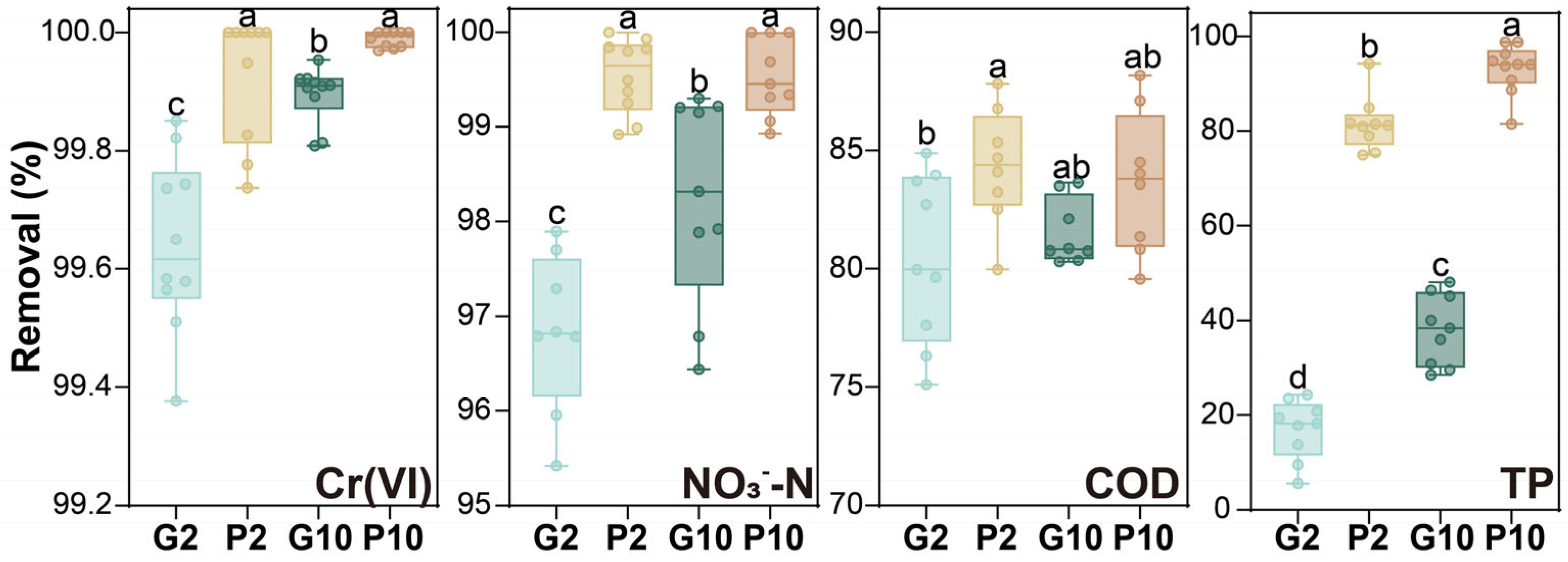 - Long, Y.; Yu, G.; Wang, J.; Zheng, D. Cadmium removal by constructed wetlands containing different substrates: Performance, microorganisms and mechanisms. Bioresour. Technol. 2024, 413, 131561. [Google Scholar] [CrossRef]