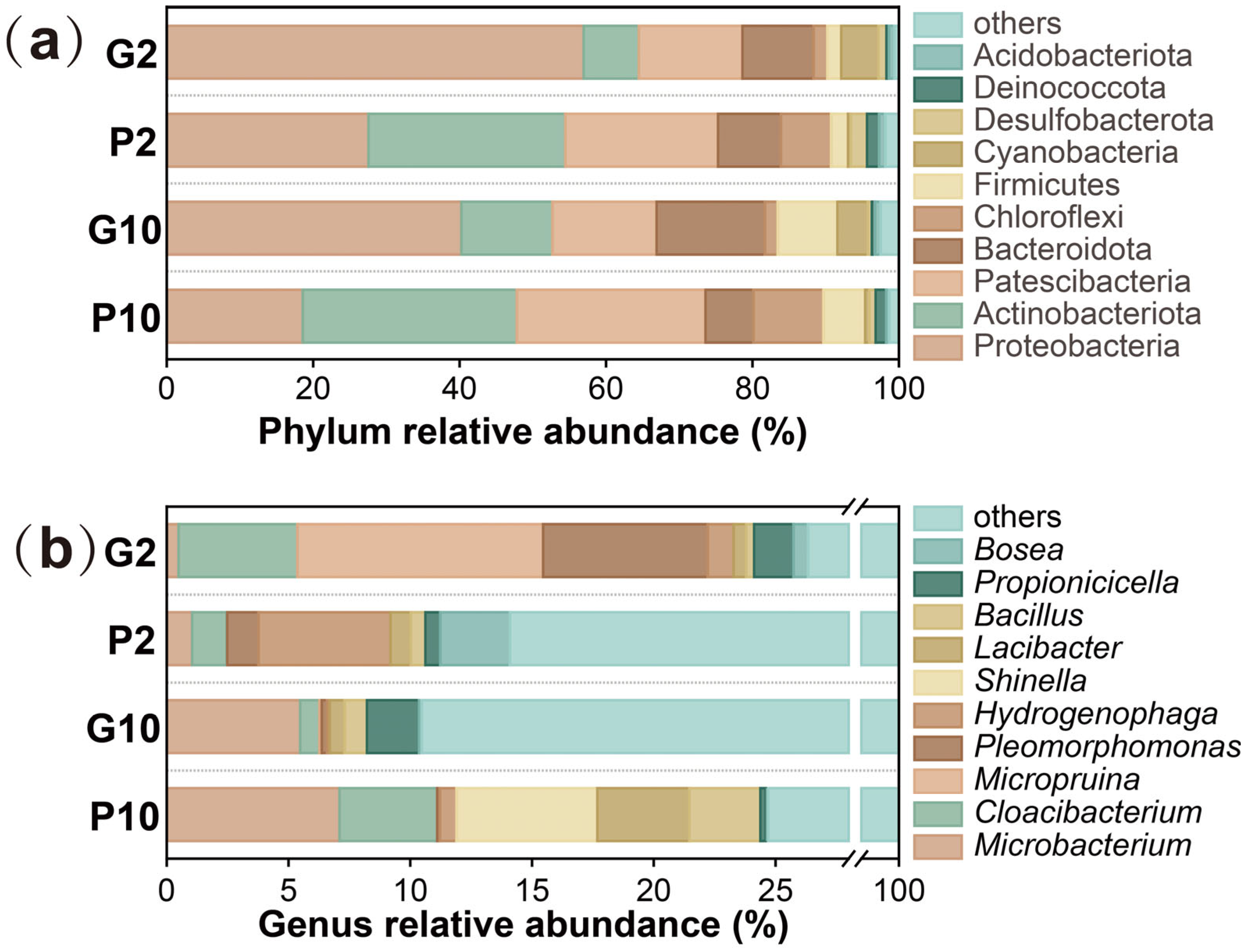 - Bolyen, E.; Rideout, J.R.; Dillon, M.R.; Bokulich, N.; Abnet, C.C.; Al-Ghalith, G.A.; Alexander, H.; Alm, E.J.; Arumugam, M.; Asnicar, F.; et al. Reproducible, interactive, scalable and extensible microbiome data science using QIIME 2. Nat. Biotechnol. 2019, 37, 852–857. [Google Scholar] [CrossRef]