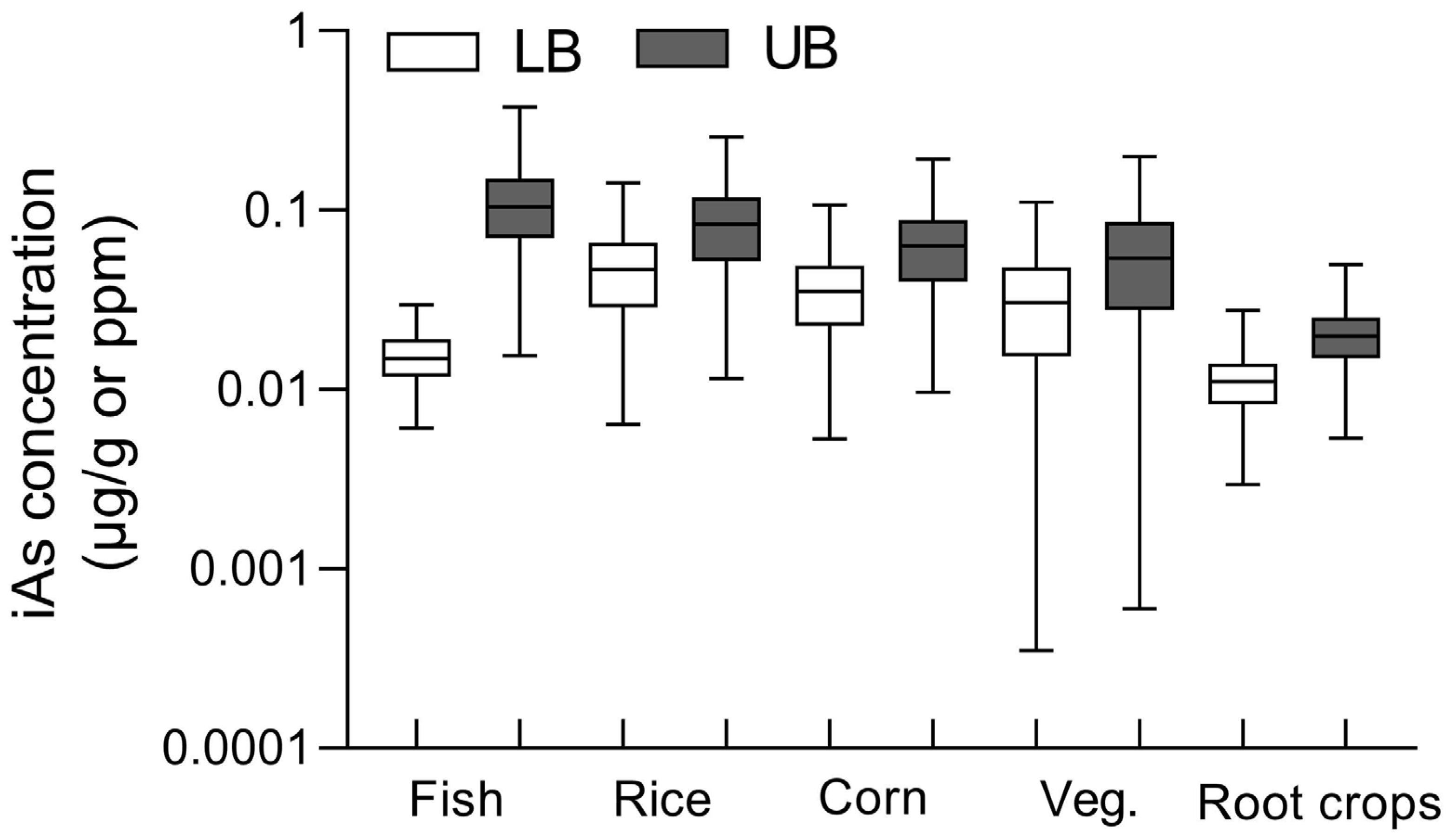 - Li, G.; Sun, G.-X.; Williams, P.N.; Nunes, L.; Zhu, Y.-G. Inorganic arsenic in Chinese food and its cancer risk. Environ. Int. 2011, 37, 1219–1225. [Google Scholar] [CrossRef]