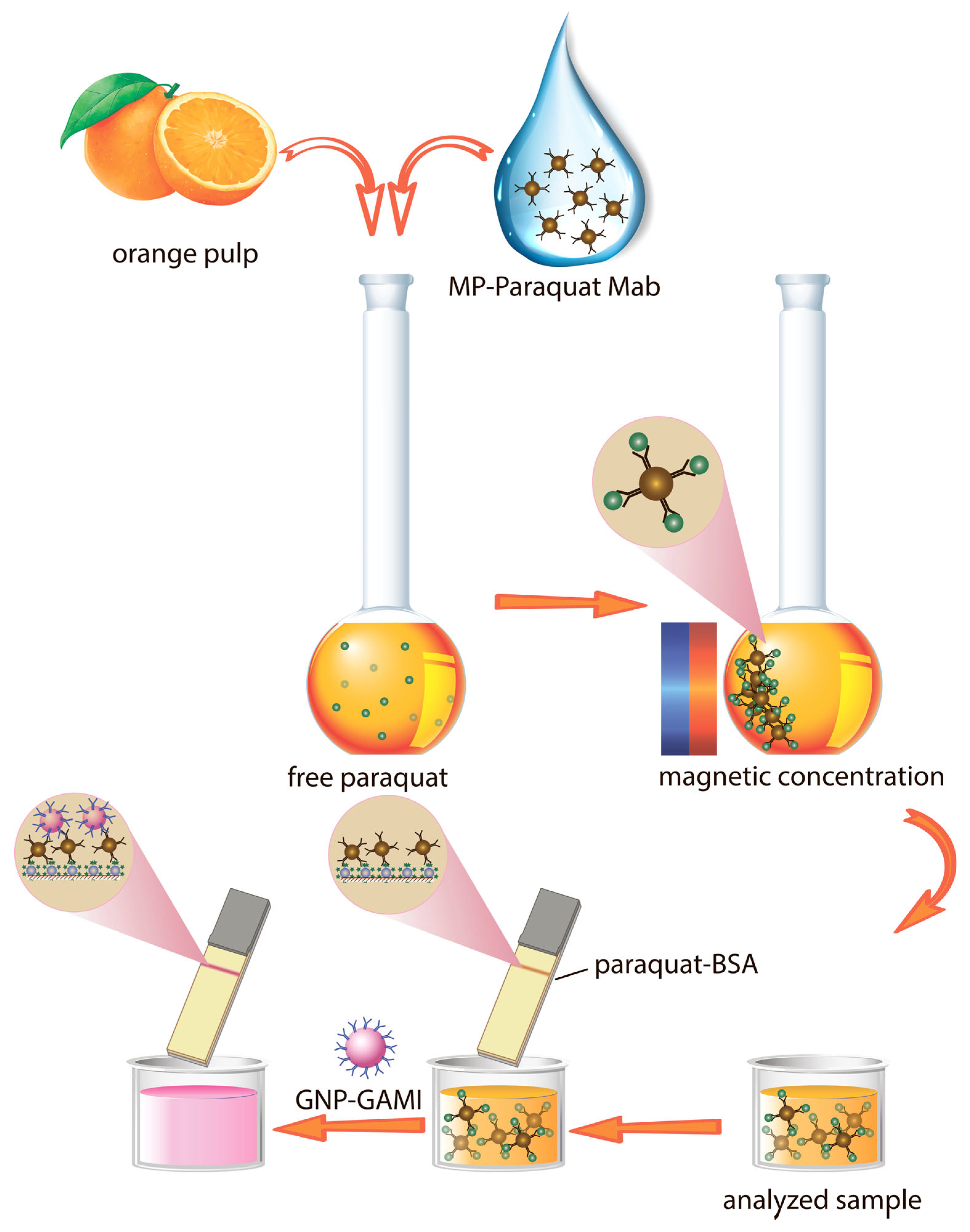 - Garcia-Febrero, R.; Valera, E.; Muriano, A.; Pividori, M.I.; Sanchez-Baeza, F.; Marco, M.P. An electrochemical magneto immunosensor (EMIS) for the determination of paraquat residues in potato samples. Anal. Bioanal. Chem. 2013, 405, 7841–7849. [Google Scholar] [CrossRef]