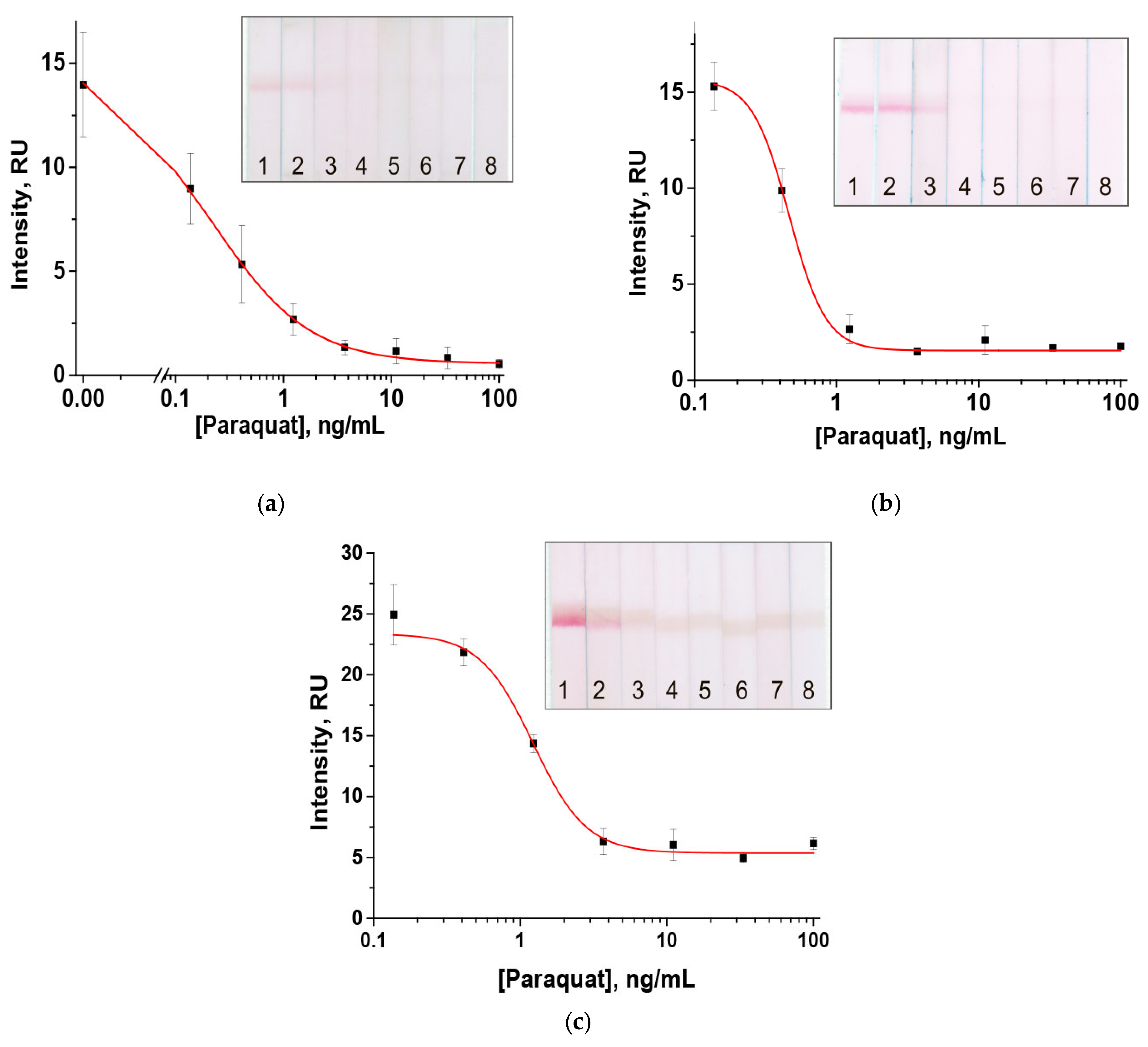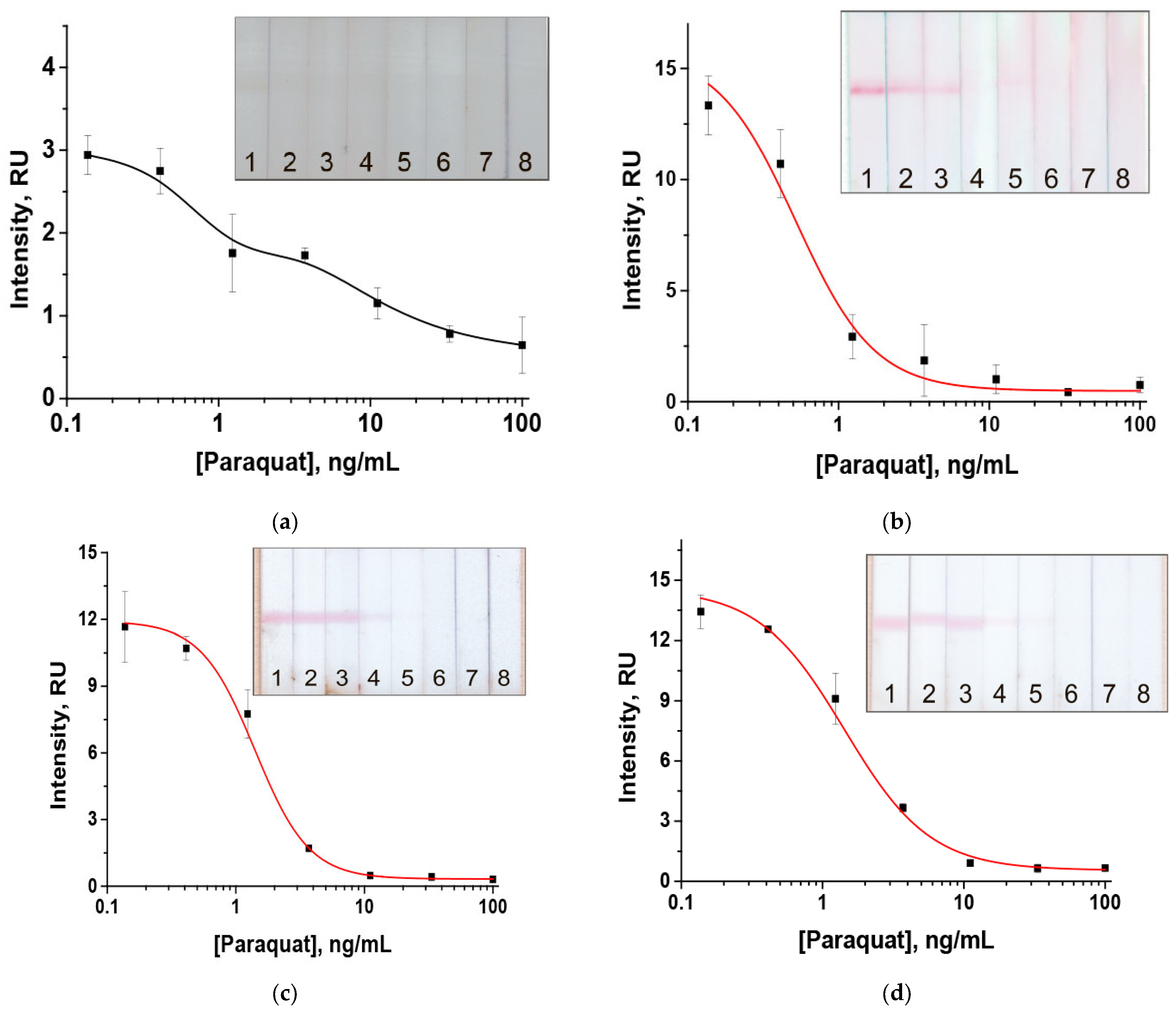 3.7. Comparison of the Developed and Earlier Described LFIAs for Paraquat