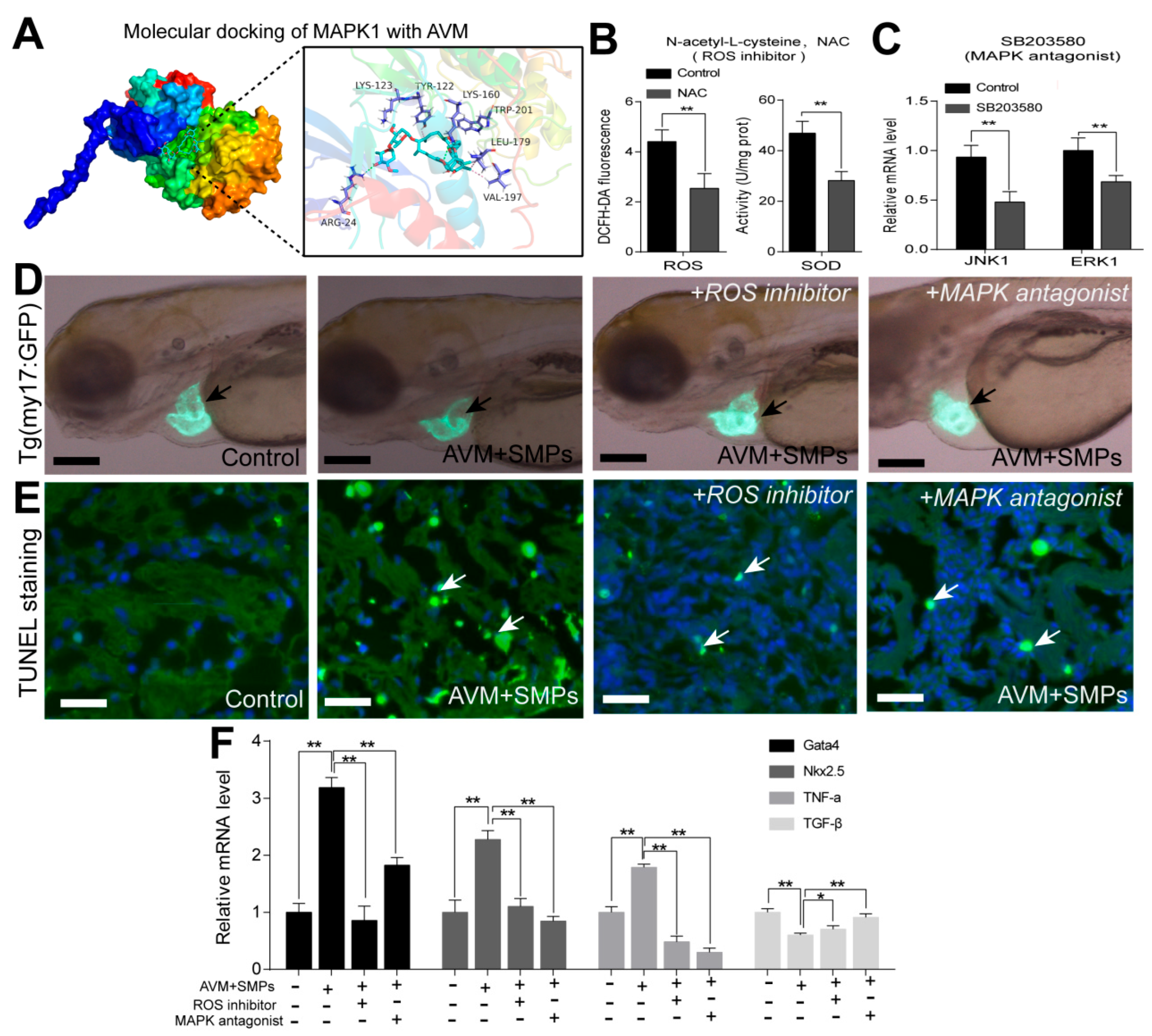 - Inhibition of MAPK and ROS could partially rescue zebrafish heart damage.
