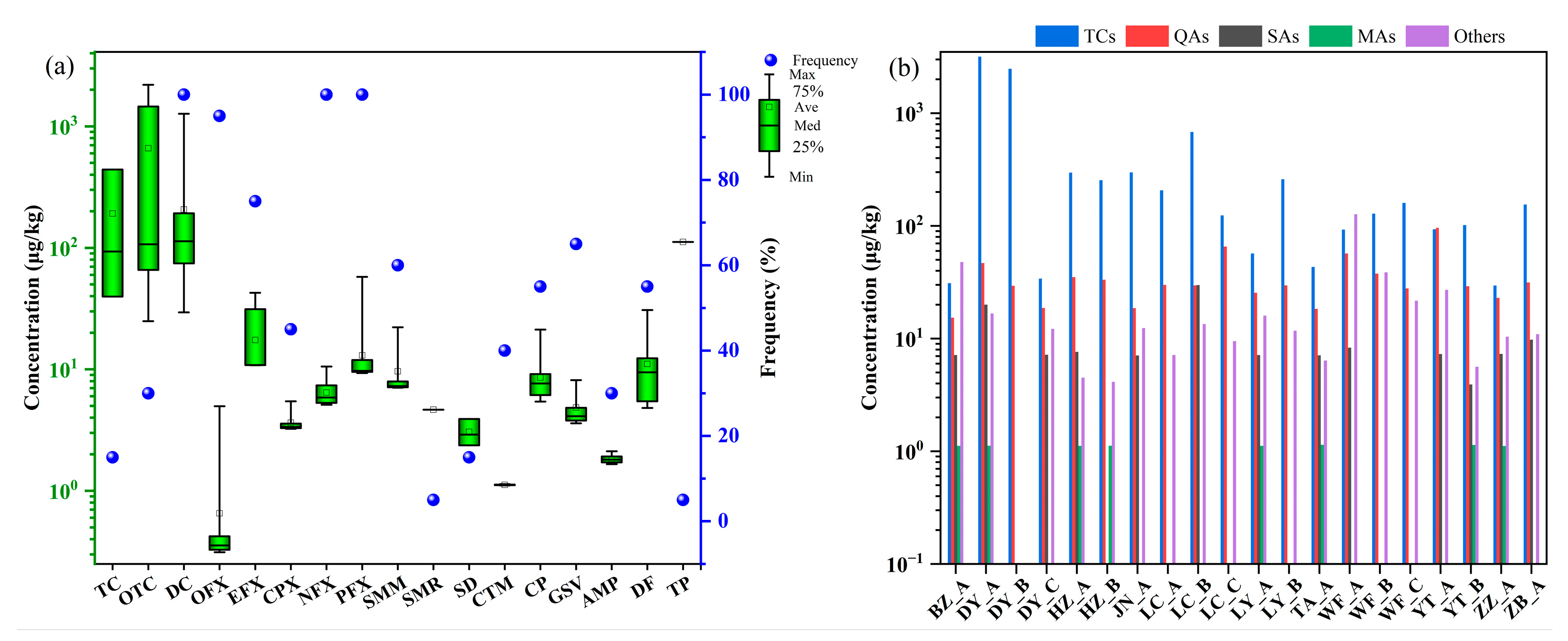- Zha, Y.; Li, Q.; Liu, H.; Ge, Y.; Wei, Y.; Wang, H.; Zhang, L.; Fan, J.; Chen, Y.; Zhang, C. Occurrence and ecological risk assessment of antibiotics in manure and the surrounding soil from typical chicken farms in Hangzhou, China. Front. Environ. Sci. 2023, 11, 1241405. [Google Scholar] [CrossRef]