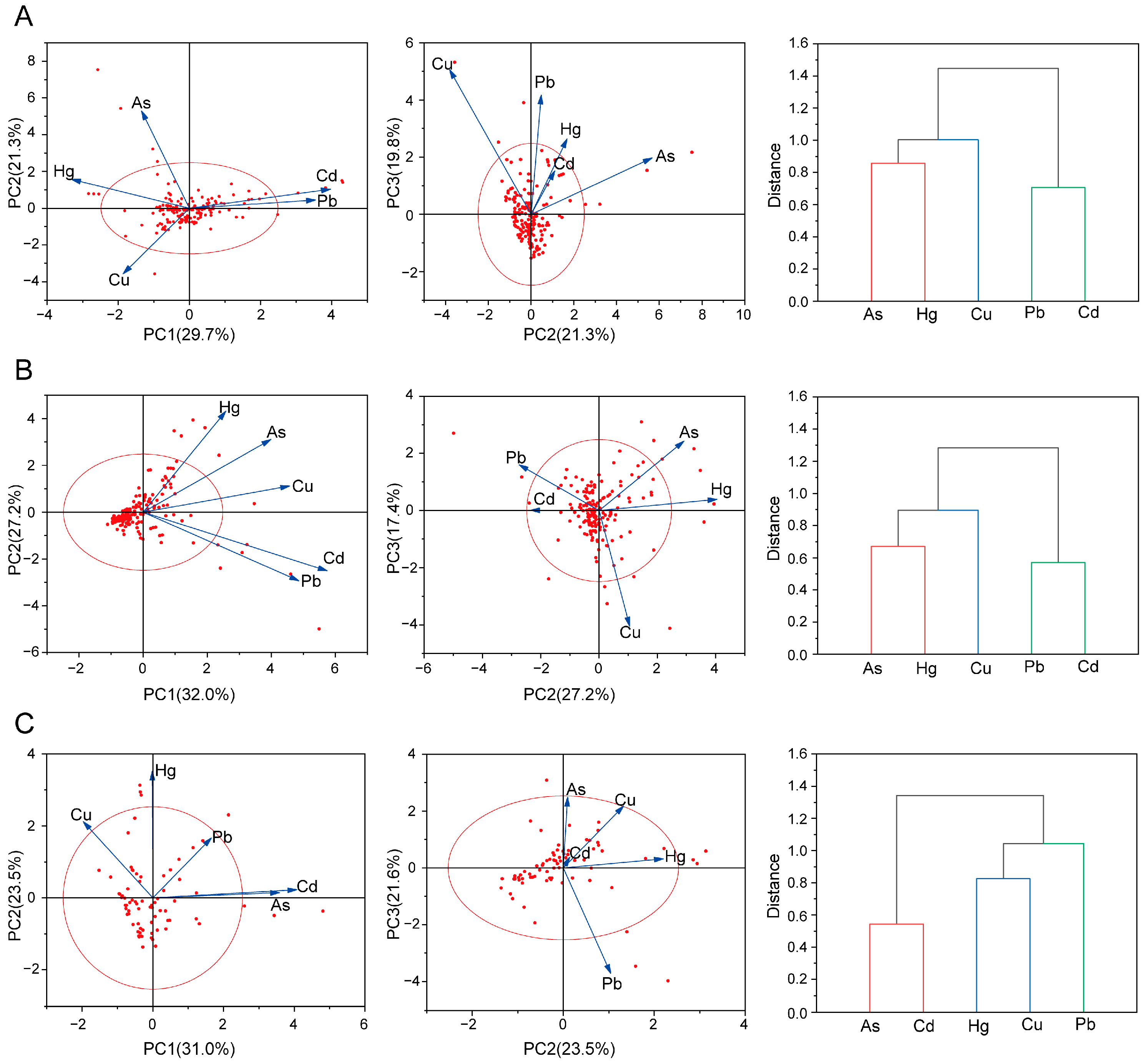 | Hg | range (mg·kg−1) | 0–1.02 | 0–0.29 | 0–1.02 | 0–1.00 |
