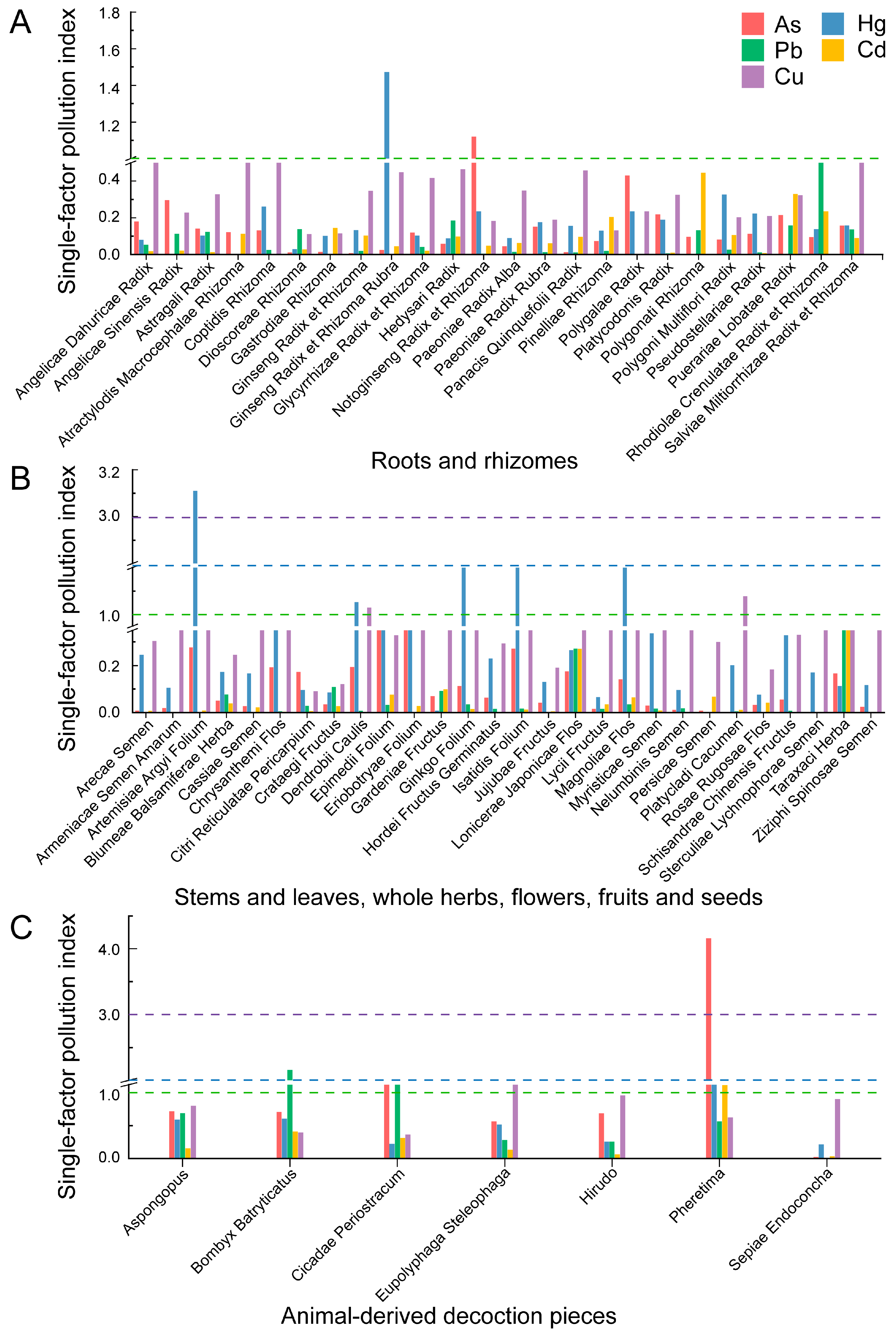 - Contamination profiles differed by material type and medicinal part, with animal-derived decoction pieces showing notably higher metal loads. It is recommended that corresponding limit standards be established for all other single-ingredient animal-derived medicinal materials, excluding Sepiae Endoconcha and Hirudo.