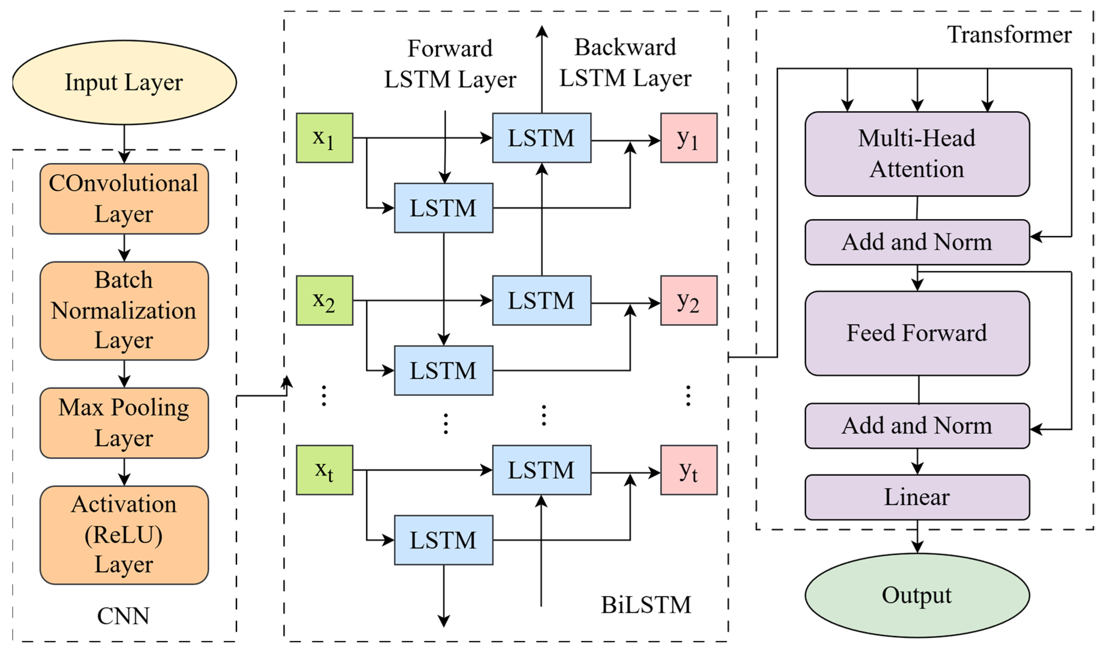 | CNN–BiLSTM–Transformer | 0.9832 | 0.9687 | 0.9743 | 6.5734 | 8.1896 | 5.4236 | 4.6801 | 5.6748 | 4.0220 | 20.2955 | 18.1750 | 22.7791 |