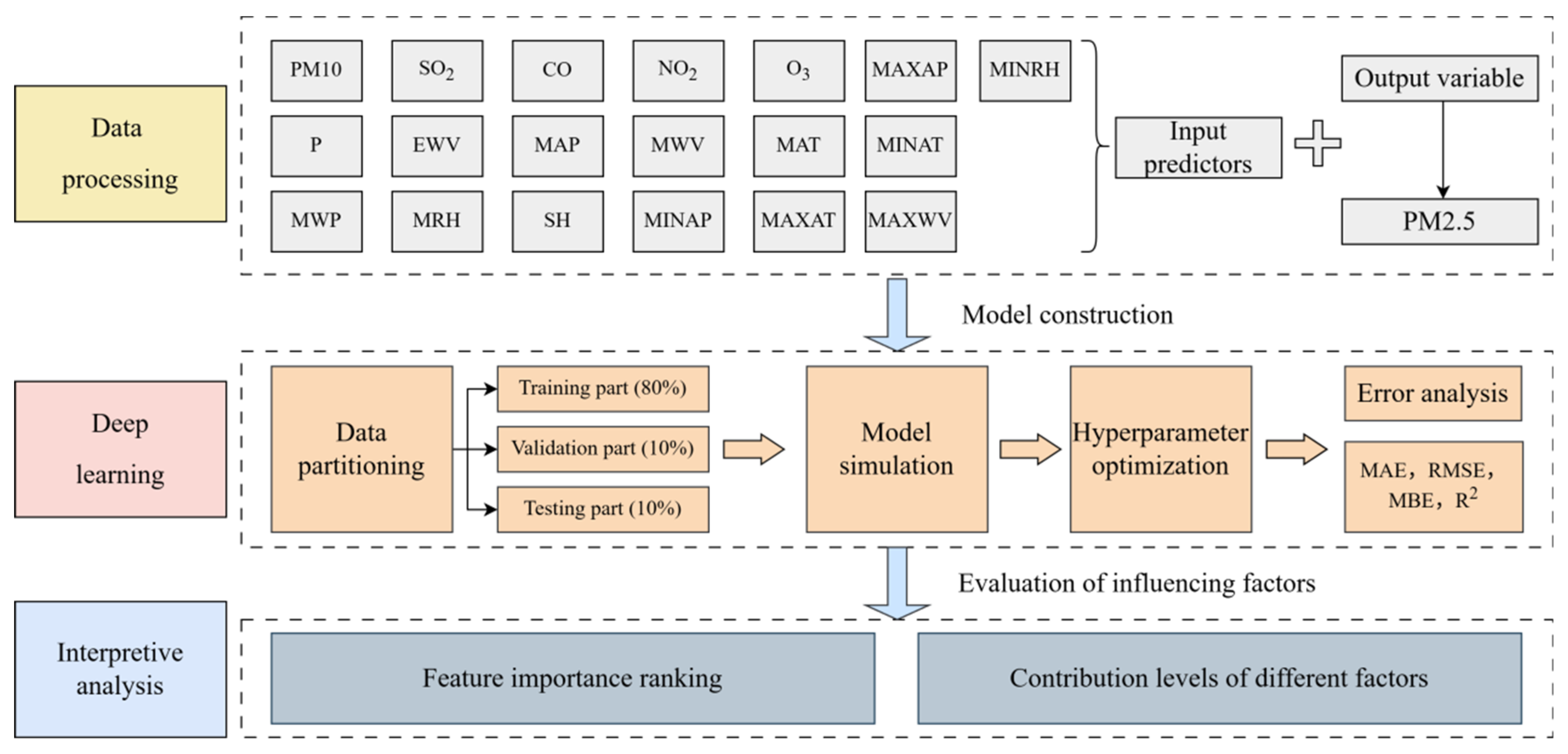 - Xie, X.; Wang, Z.; Xu, M.; Xu, N. Daily PM2.5 concentration prediction based on variational modal decomposition and deep learning for multi-site temporal and spatial fusion of meteorological factors. Environ. Monit. Assess. 2024, 196, 859. [Google Scholar] [CrossRef]