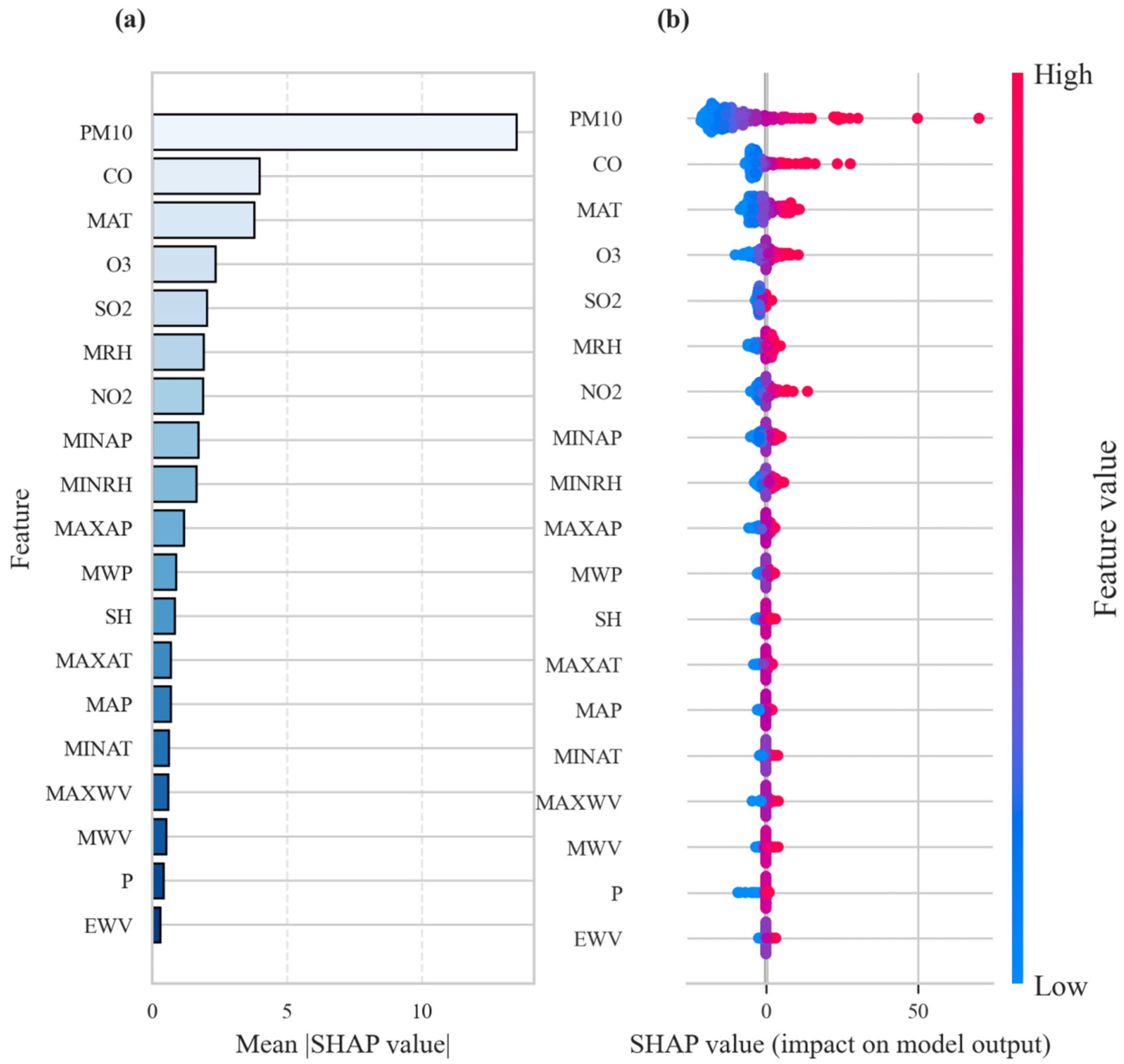 - Malakouti, S.M. From accurate to actionable: Interpretable PM2.5 forecasting with feature engineering and SHAP for the Liverpool–Wirral region. Environ. Chall. 2025, 21, 101290. [Google Scholar] [CrossRef]