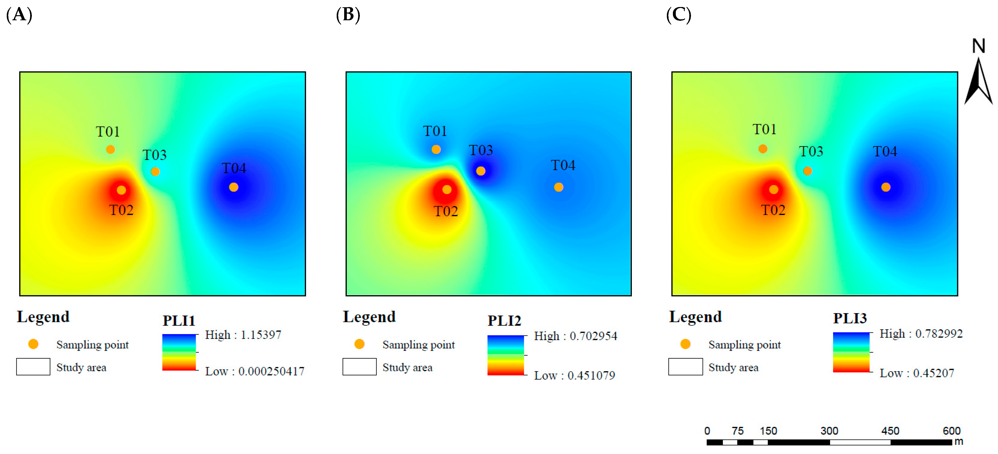 3.1.3. Nemerow Comprehensive Pollution Index Method