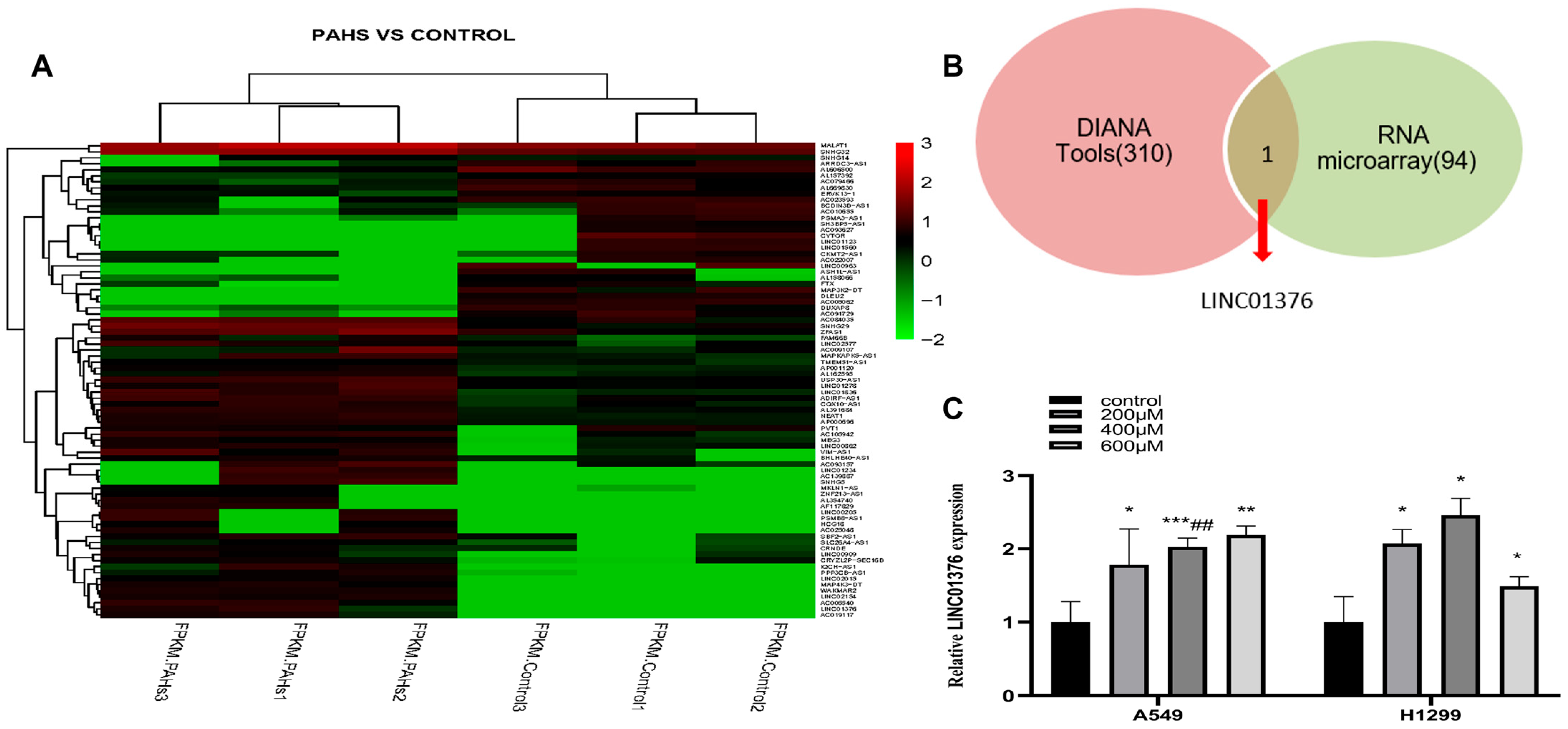 3.1. The Effects of LMW-PAHs on LINC01376 Expression