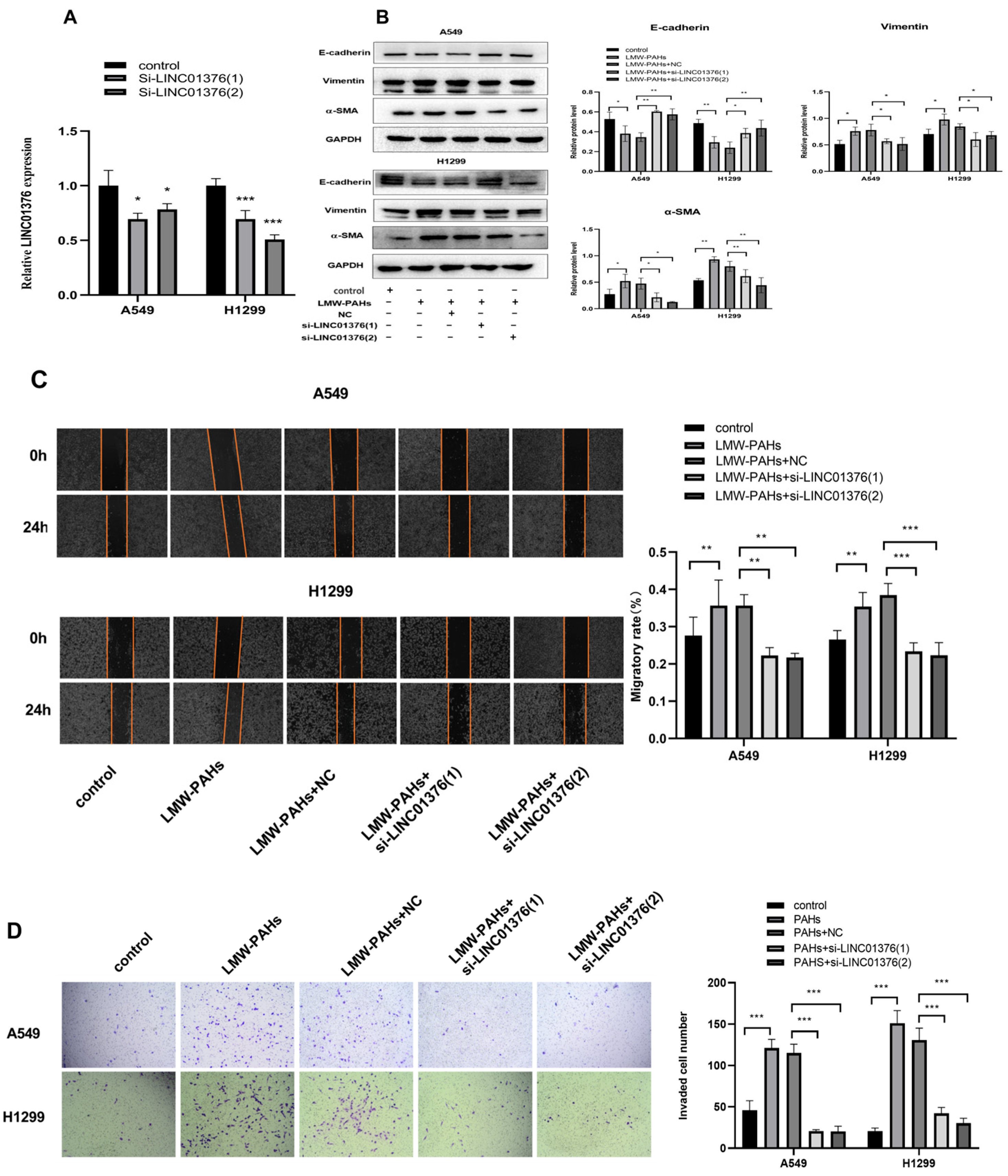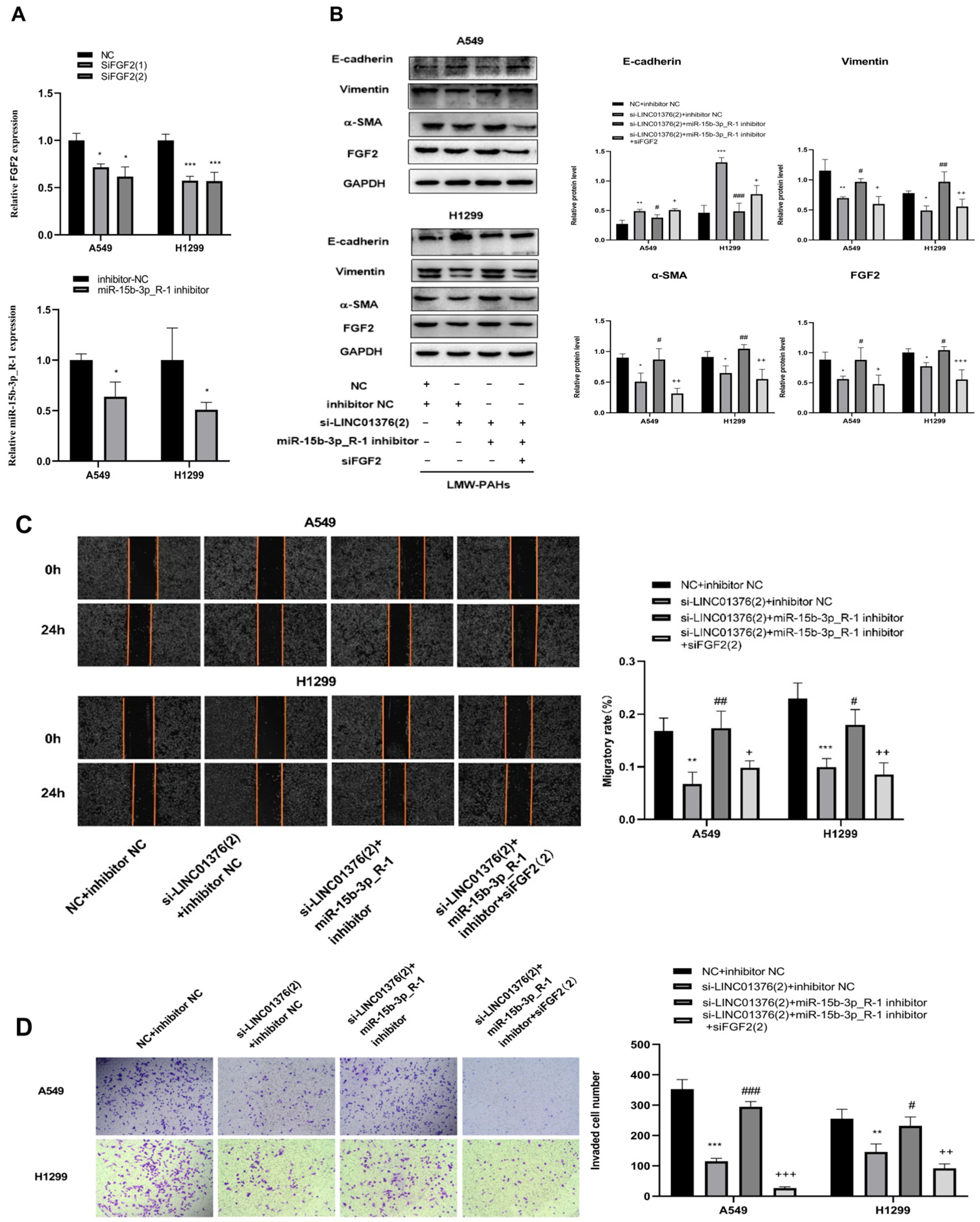 Qin J, Huang Y, Hu Y, Ma H, Zhang Z, Li Y, Jiang S, Li C, Li K, Wang J, et al. The Role of the LINC01376/miR-15b-3p_R-1/FGF2 Axis in A549 and H1299 Cells EMT Induced by LMW-PAHs. Toxics. 2026; 14(1):54. https://doi.org/10.3390/toxics14010054