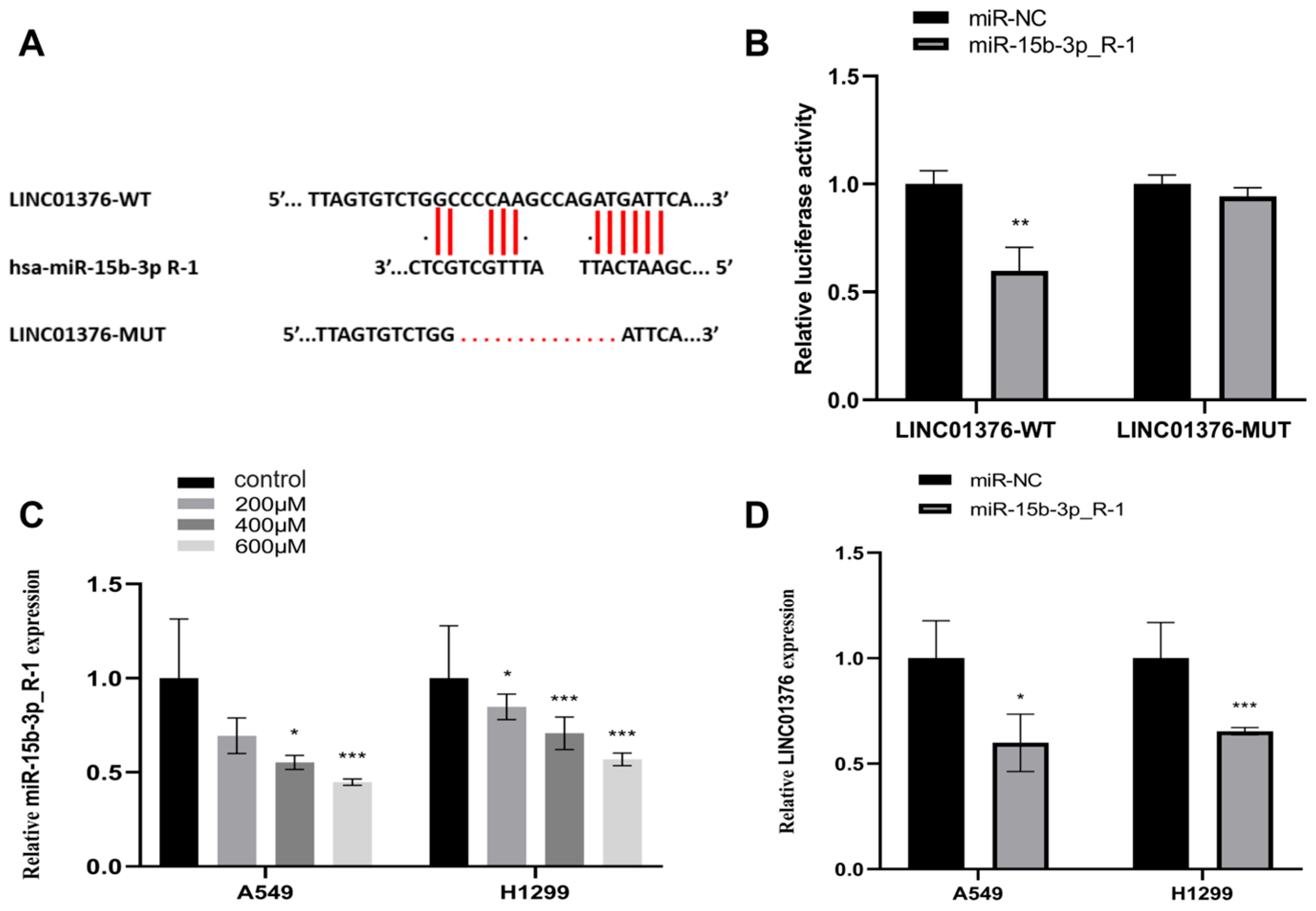 3.3. The Interaction Between LINC01376 and miR-15b-3p_R-1