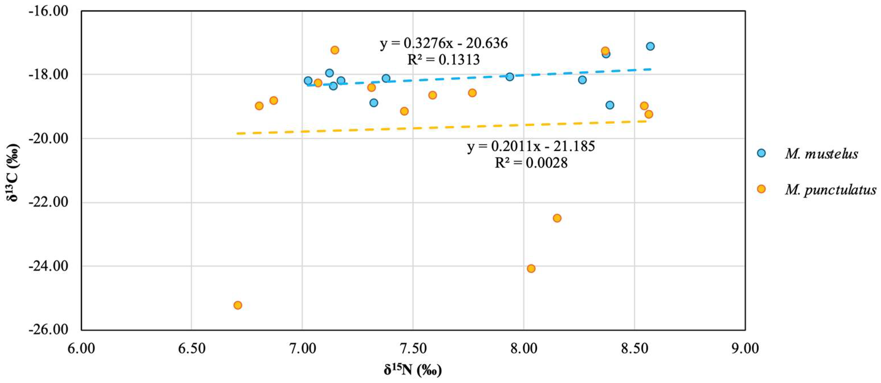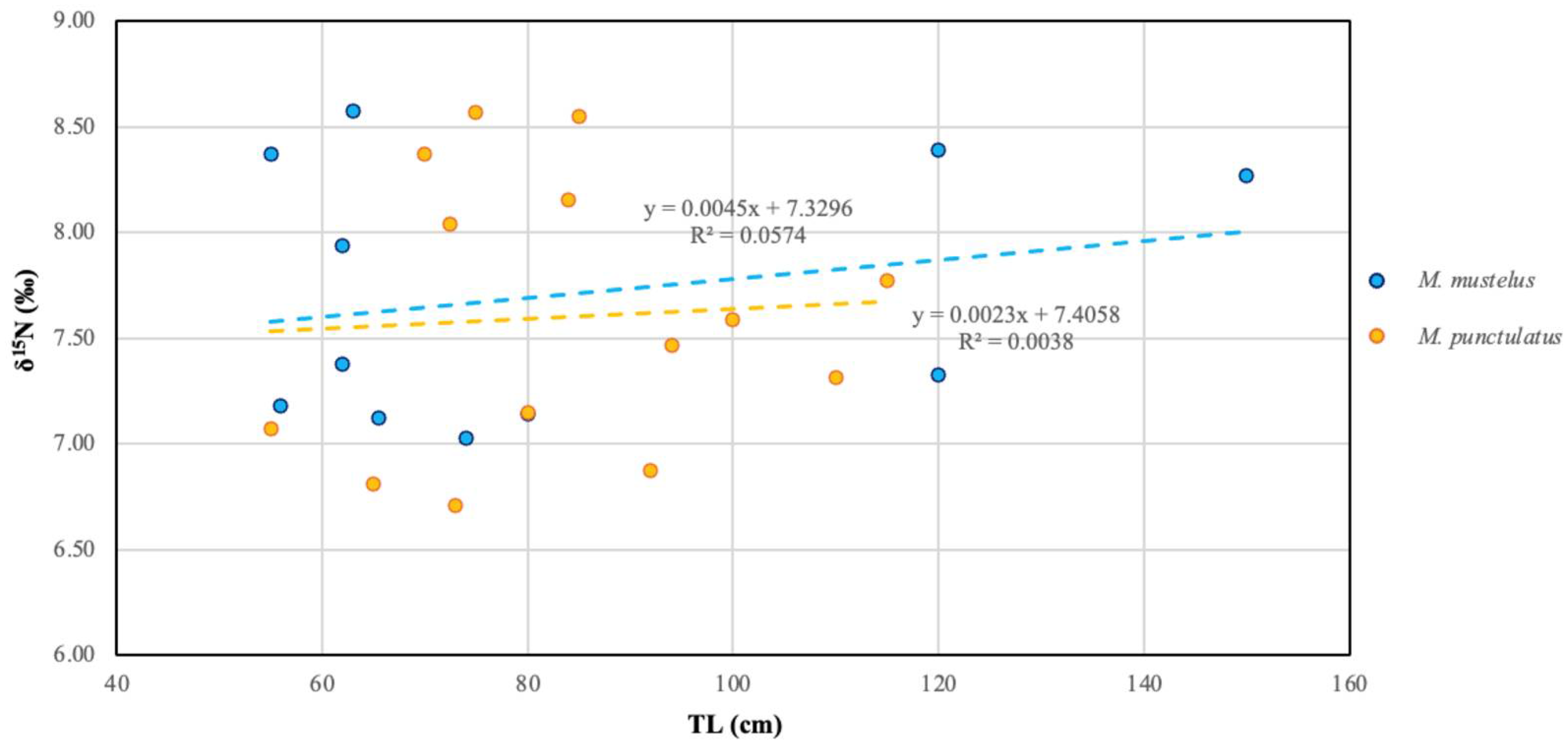 - Boecklen, W.J.; Yarnes, C.T.; Cook, B.A.; James, A.C. On the Use of Stable Isotopes in Trophic Ecology. Annu. Rev. Ecol. Evol. Syst. 2011, 42, 411–440. [Google Scholar] [CrossRef]