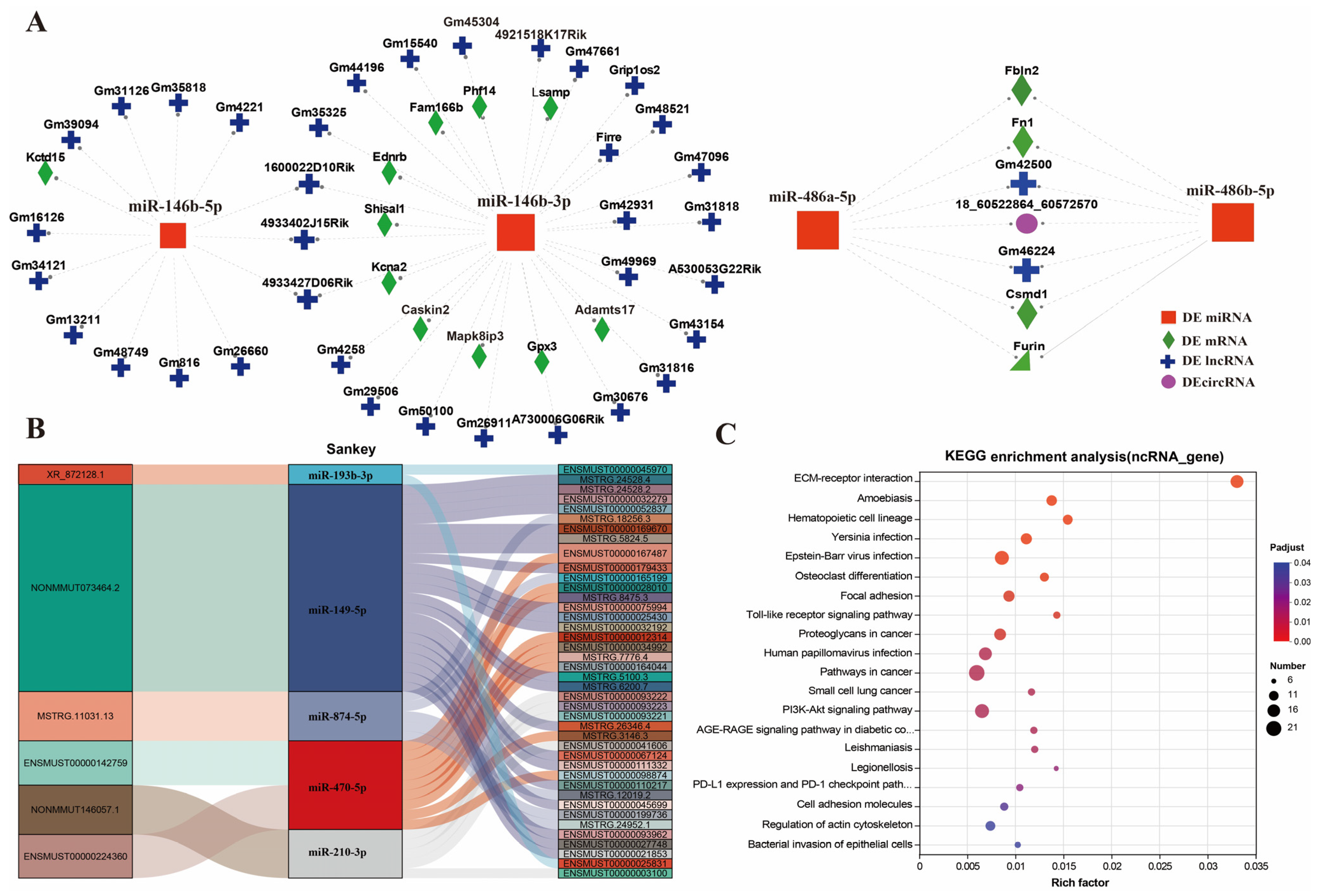 3.4. Enrichment Analysis of DEmRNAs, DEcircRNA, DElncRNAs, and DEmRNAs