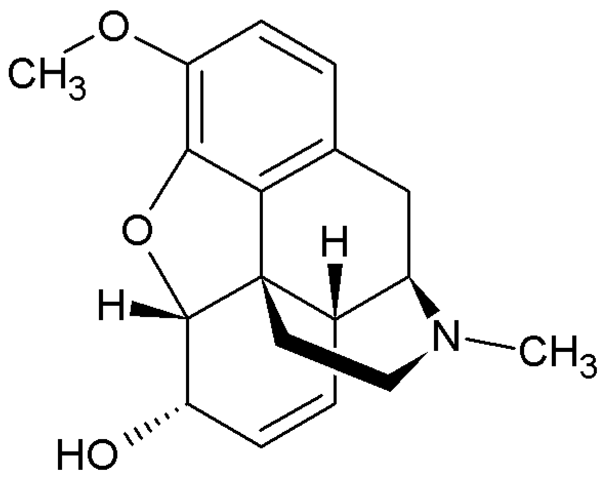 - Singu, B.; Verbeeck, R.K. Should codeine still be considered a WHO essential medicine? J. Pharm. Pharmaceut. Sci. 2021, 24, 329–335. [Google Scholar] [CrossRef] [PubMed]