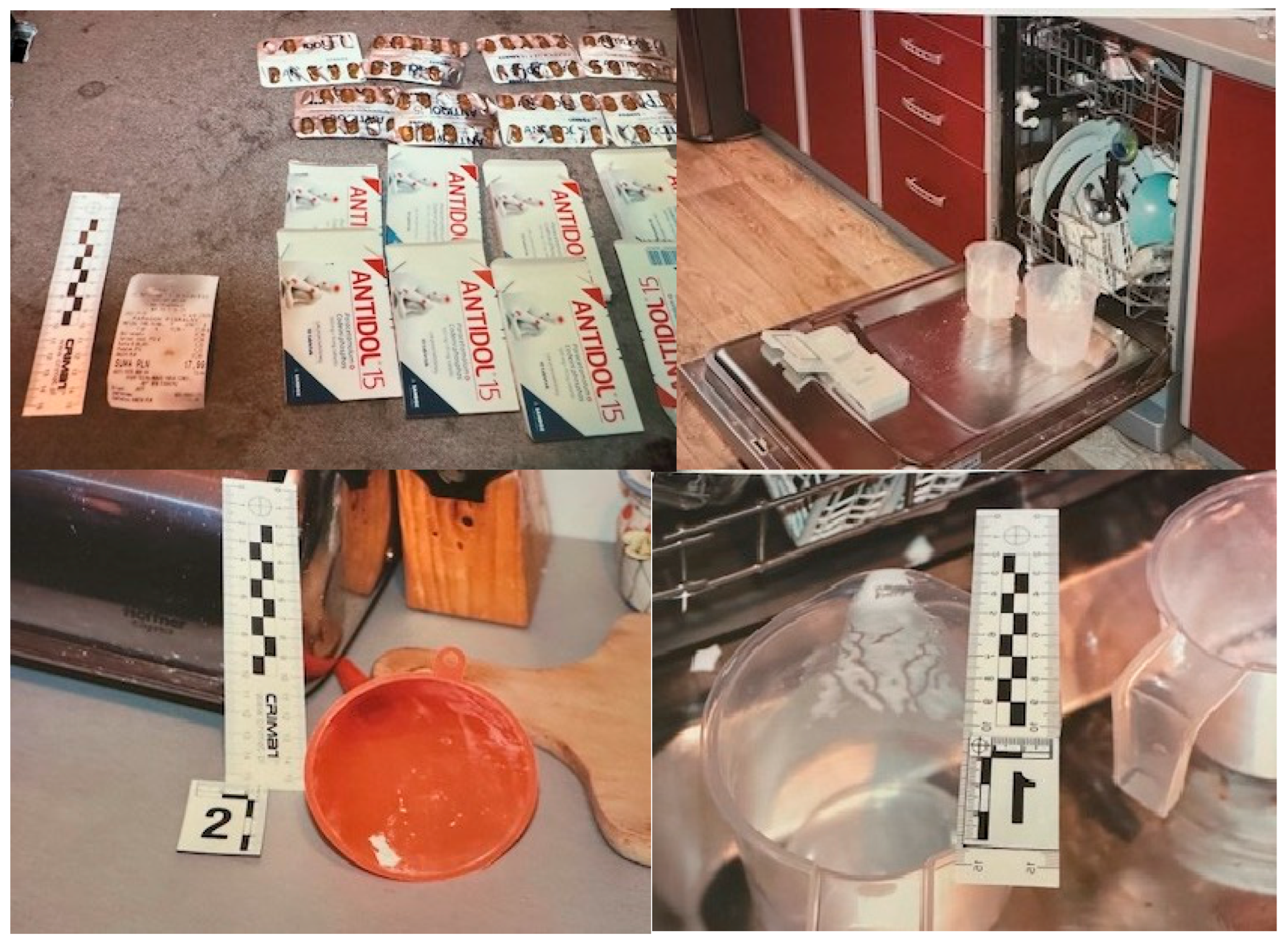 Scene investigation revealed multiple empty blister packs of Antidol®, containers of energy drinks, and blister remnants of alprazolam and hydroxyzine, as well as other OTC medications. Given the presence of multiple psychoactive substances, a medicolegal autopsy and comprehensive toxicological analysis were conducted.