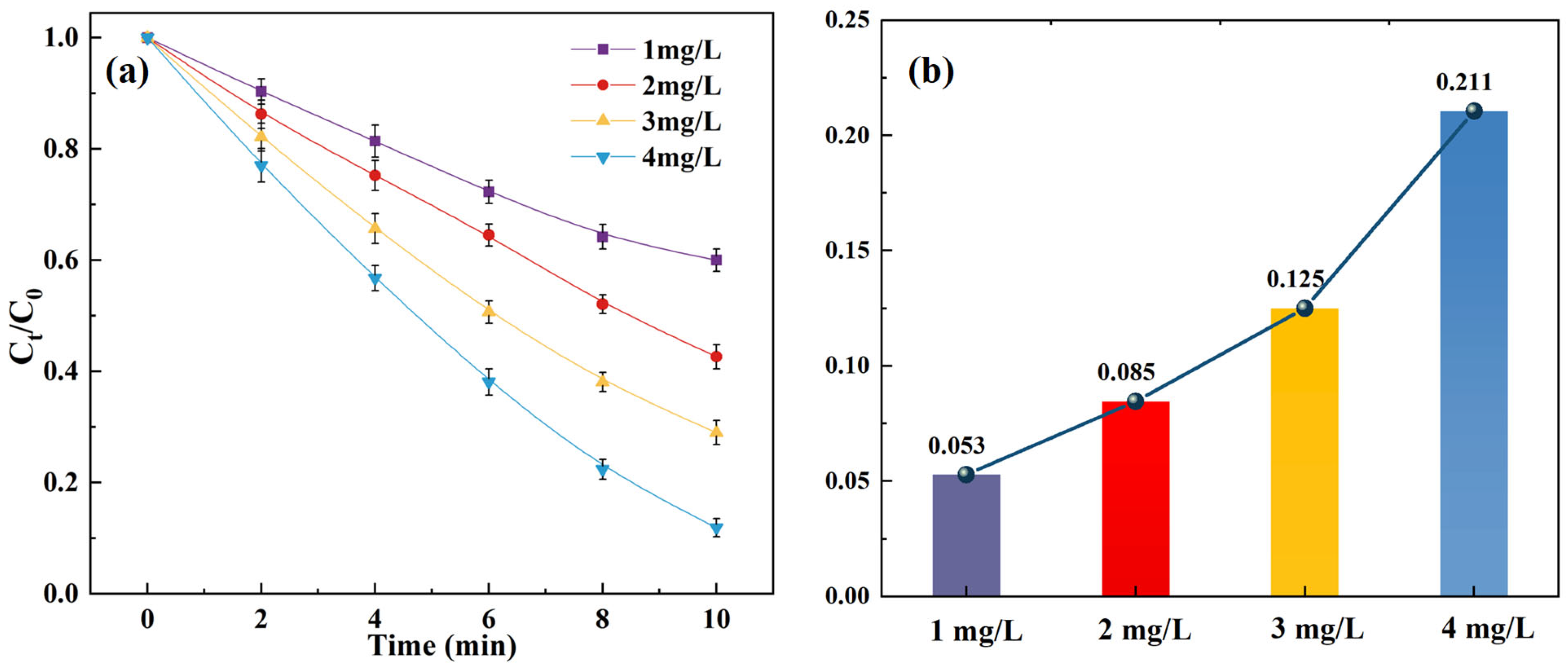 3.1.1. Effect of O3 Dosage on SCP Removal