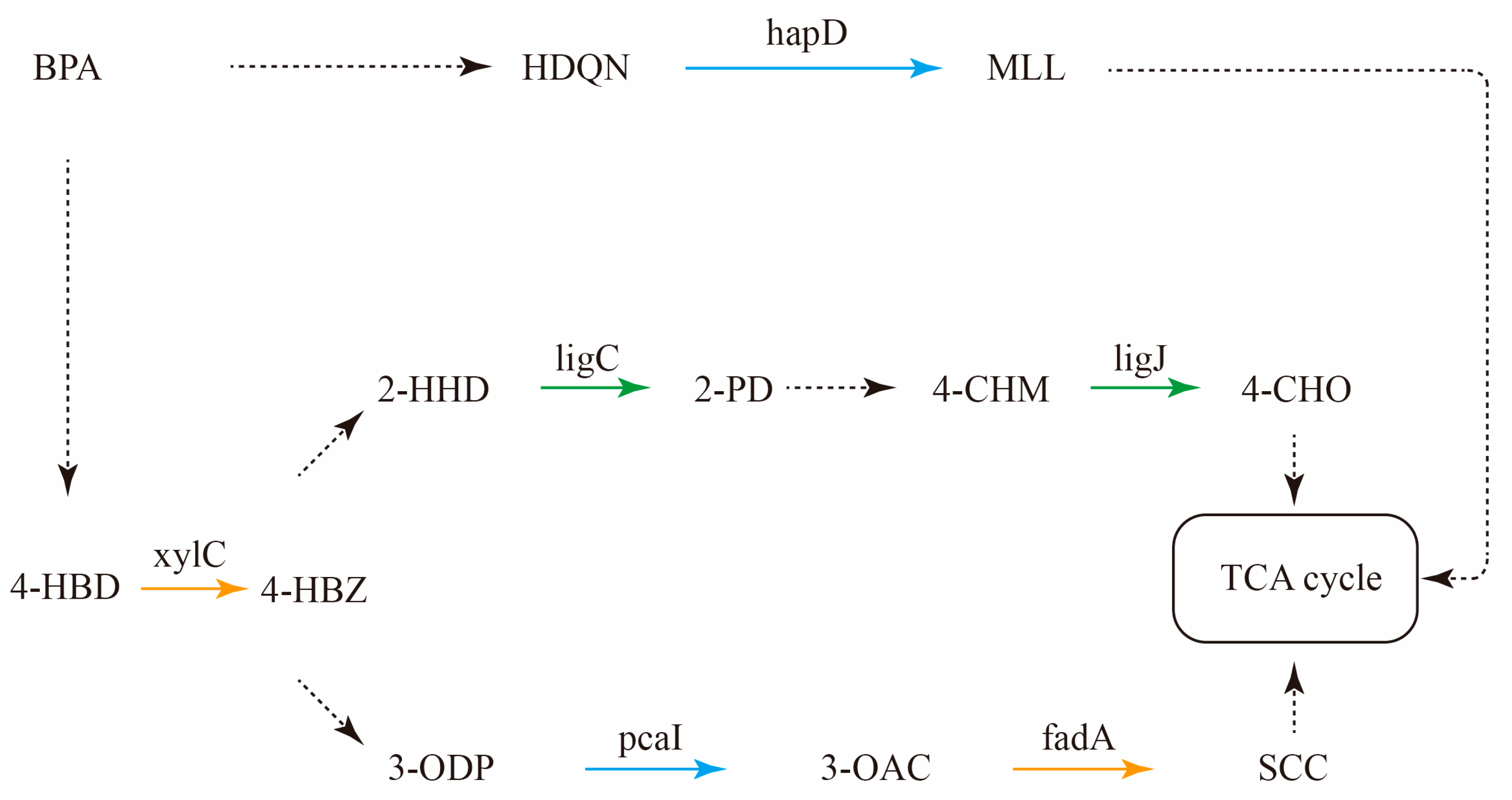 - Ni, B.; Zhang, Y.; Chen, D.-W.; Wang, B.-J.; Liu, S.-J. Assimilation of aromatic compounds by Comamonas testosteroni: Characterization and spreadability of protocatechuate 4,5-cleavage pathway in bacteria. Appl. Microbiol. Biotechnol. 2013, 97, 6031–6041. [Google Scholar] [CrossRef]