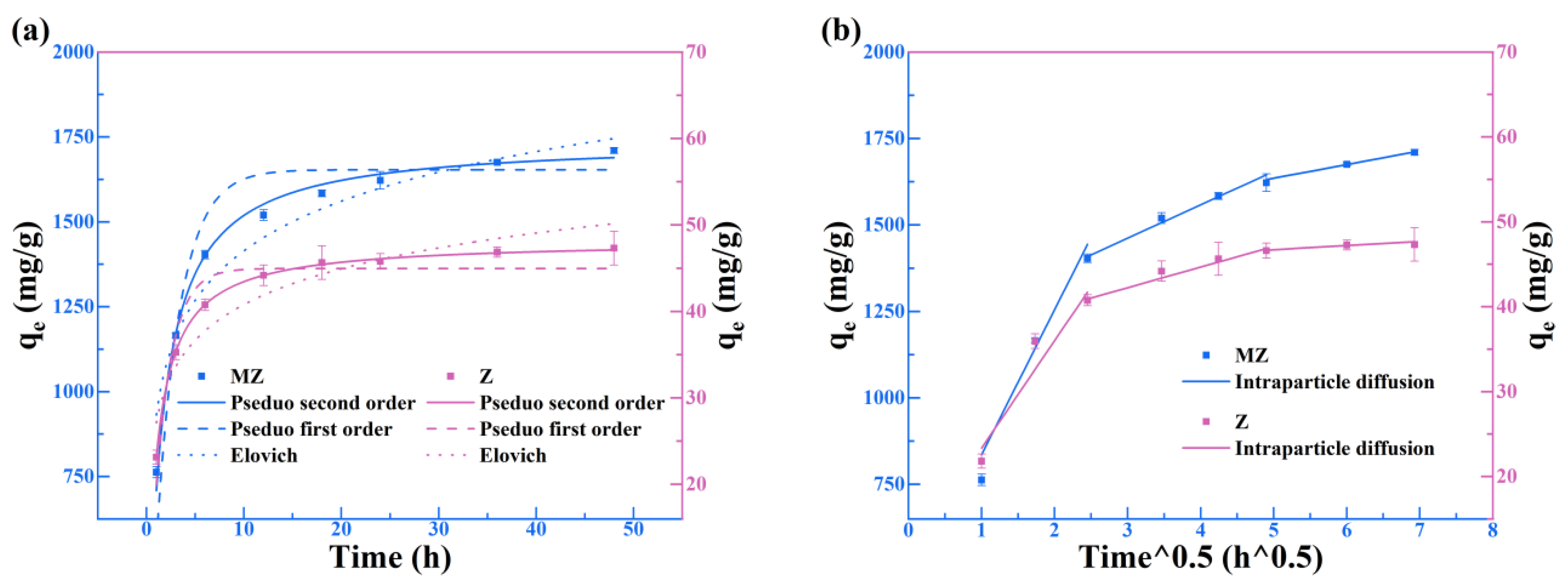 | Adsorption Kinetic | Parameters | Z | MZ |
