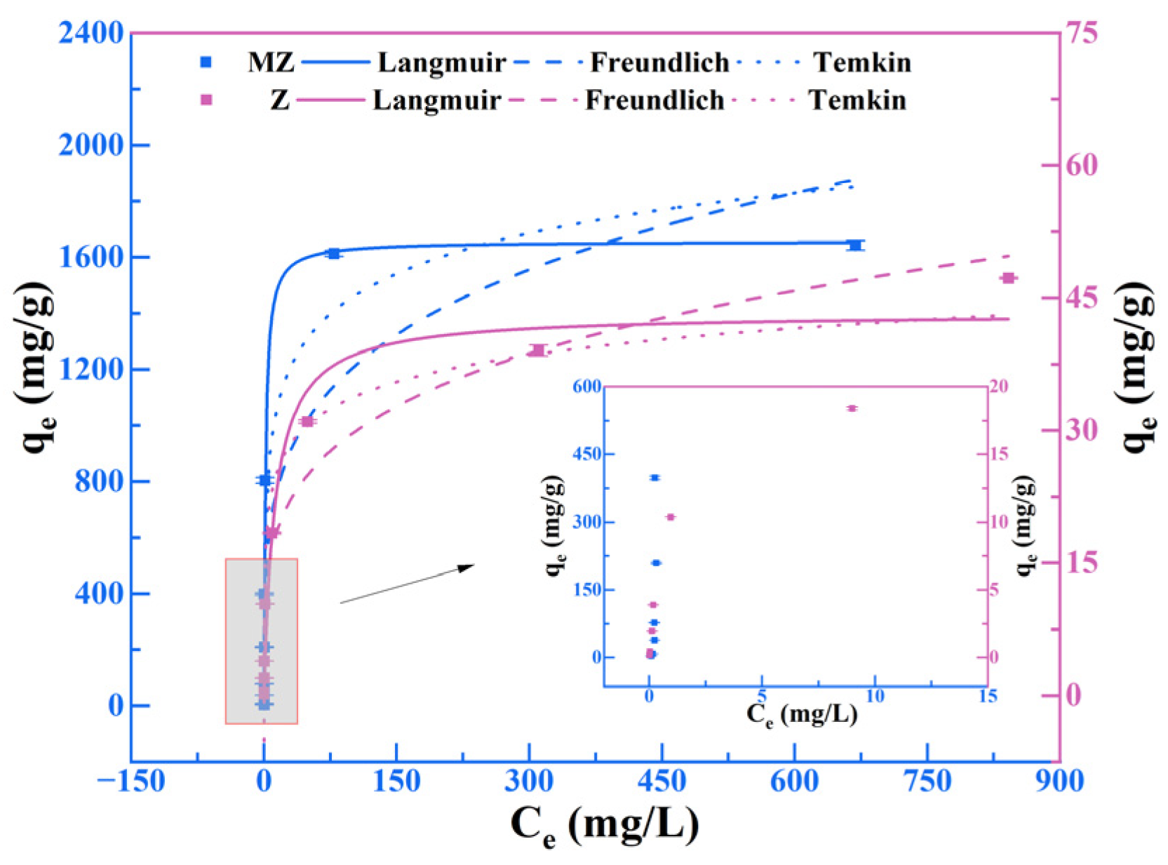 | Langmuir model | R2 | 0.9591 | 0.9686 |