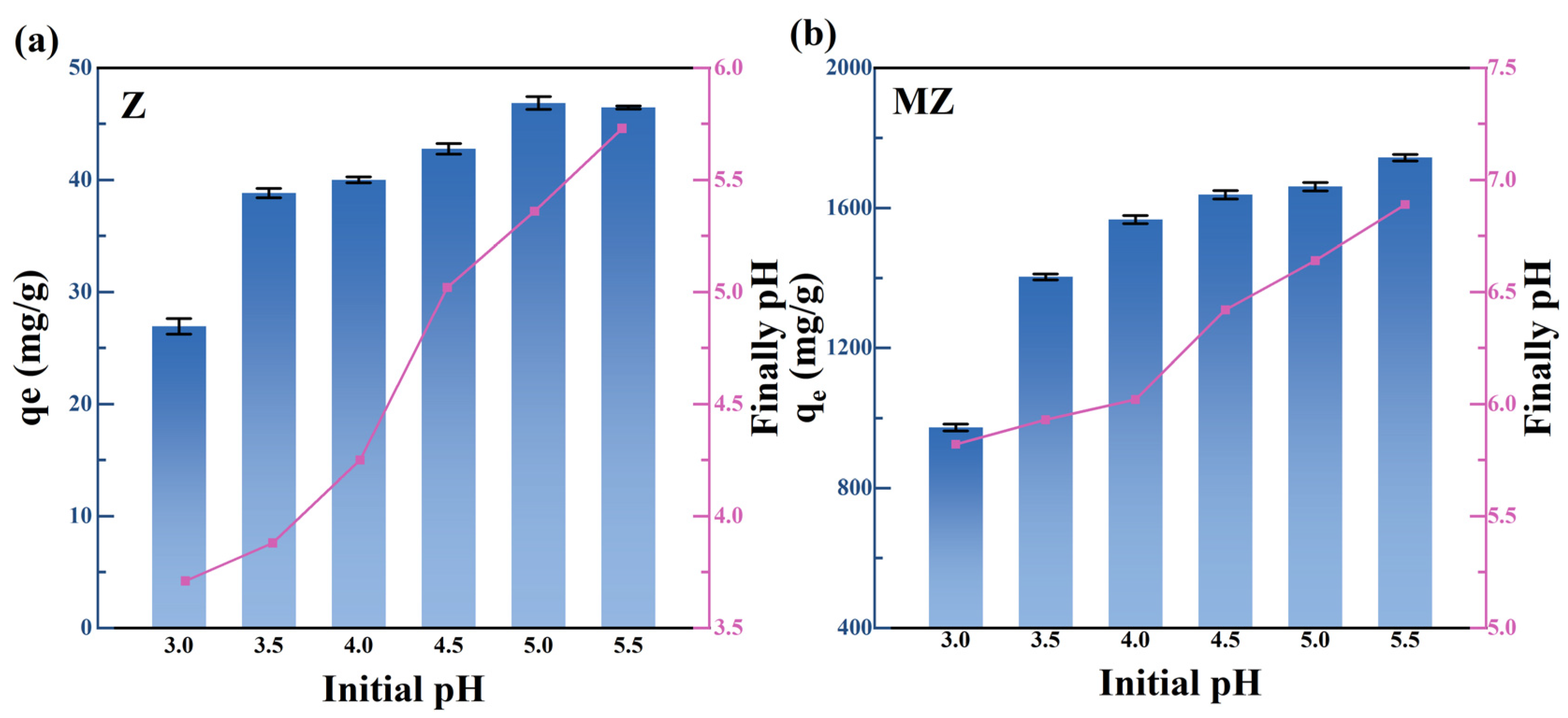 | qe (mg/g) | 48.1736 ± 0.0839 | 1740.2486 ± 10.3087 | |