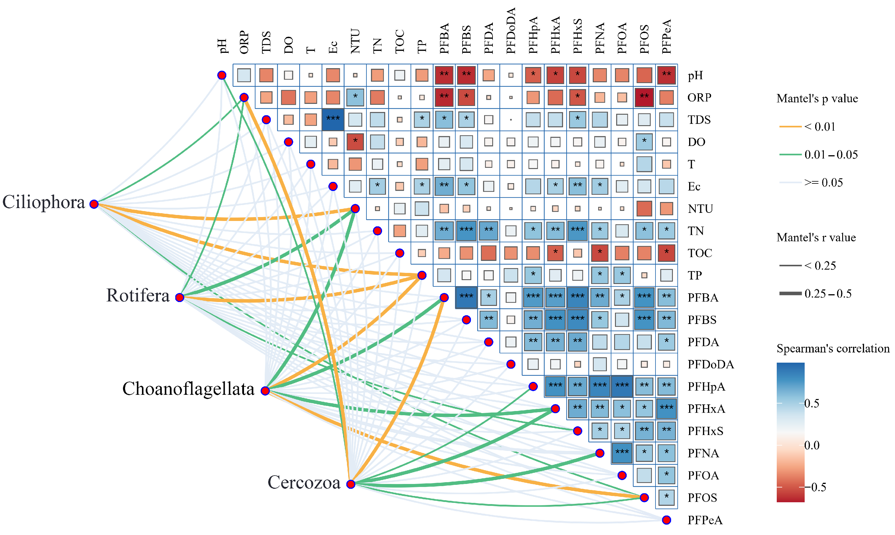 3.4. Correlation Between PFAS, Water Parameters, and Zooplankton Community
