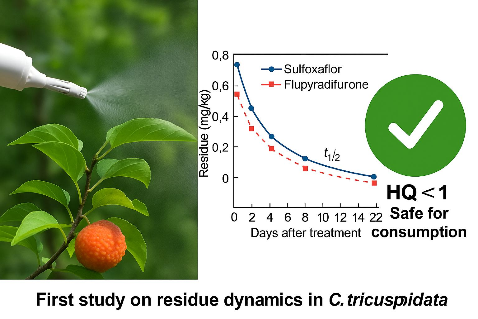 | Flupyradifurone | C. tricuspidata (fruit) | 7 | 14.02 | 0.412 (predicted) | This study |