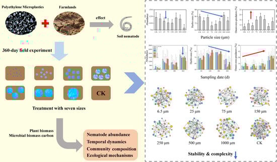 Chicago/Turabian StyleHe, Tianyao, Shiyu Zhu, Xiankun Liu, Jie Chen, Liping He, Kehong Wang, Yihua Zhu, and Hongzhi Xu. 2026. "Size- and Time-Dependent Effects of Polyethylene Microplastics on Soil Nematode Communities: A 360-Day Field Experiment" Toxics 14, no. 2: 127. https://doi.org/10.3390/toxics14020127