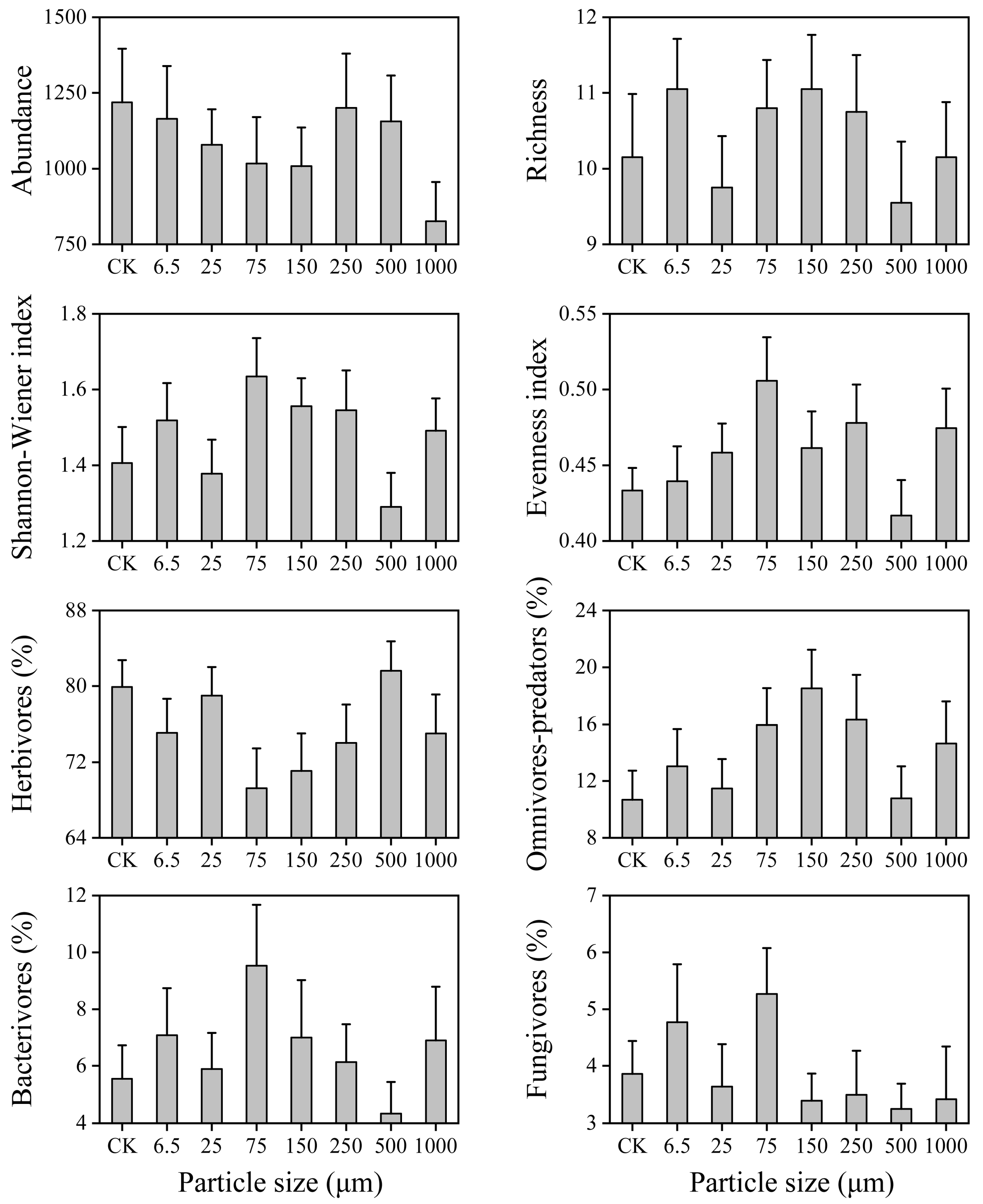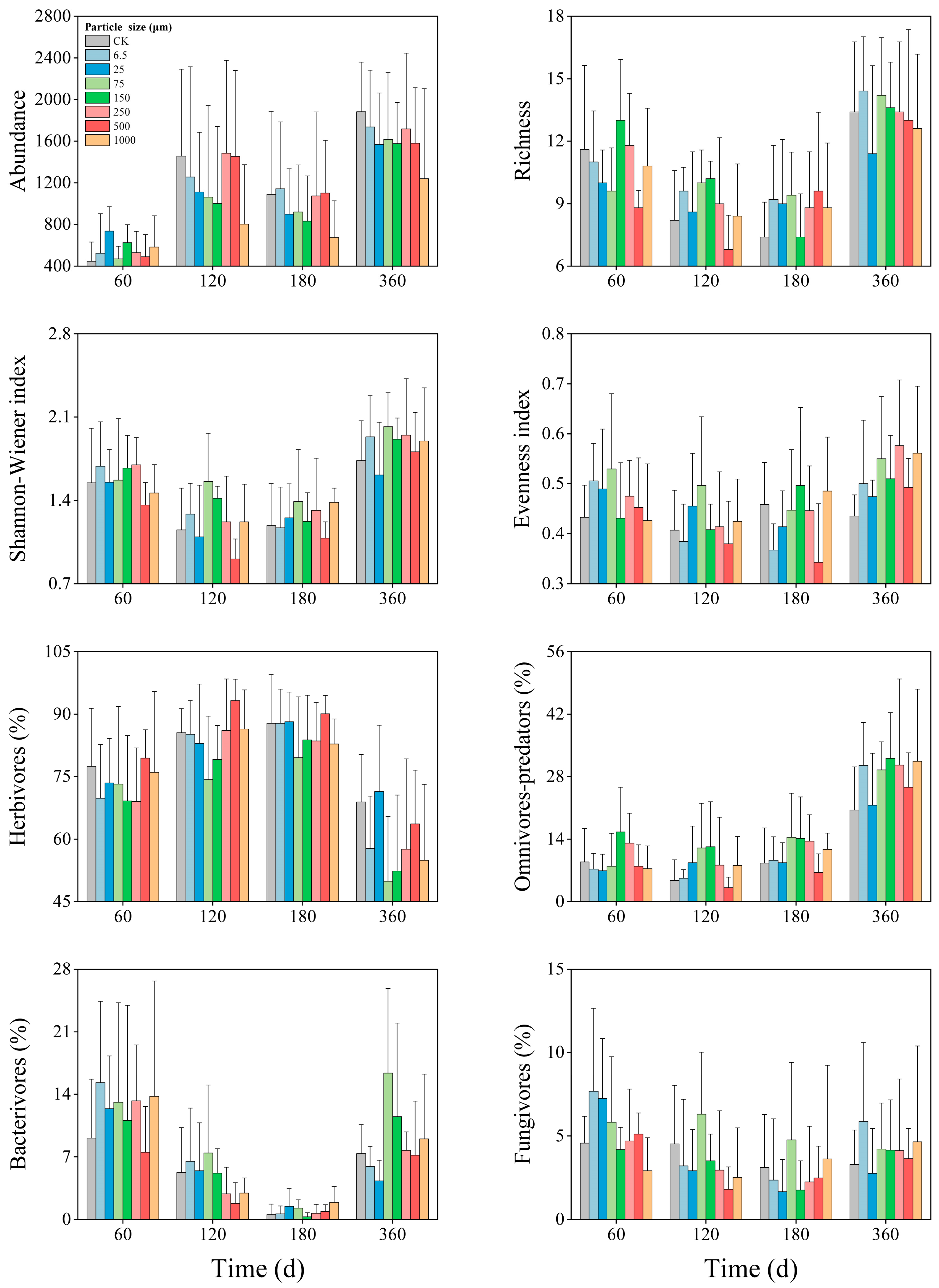 4.2. The Effect of Microplastics on Soil Nematodes Depended on Particle Size