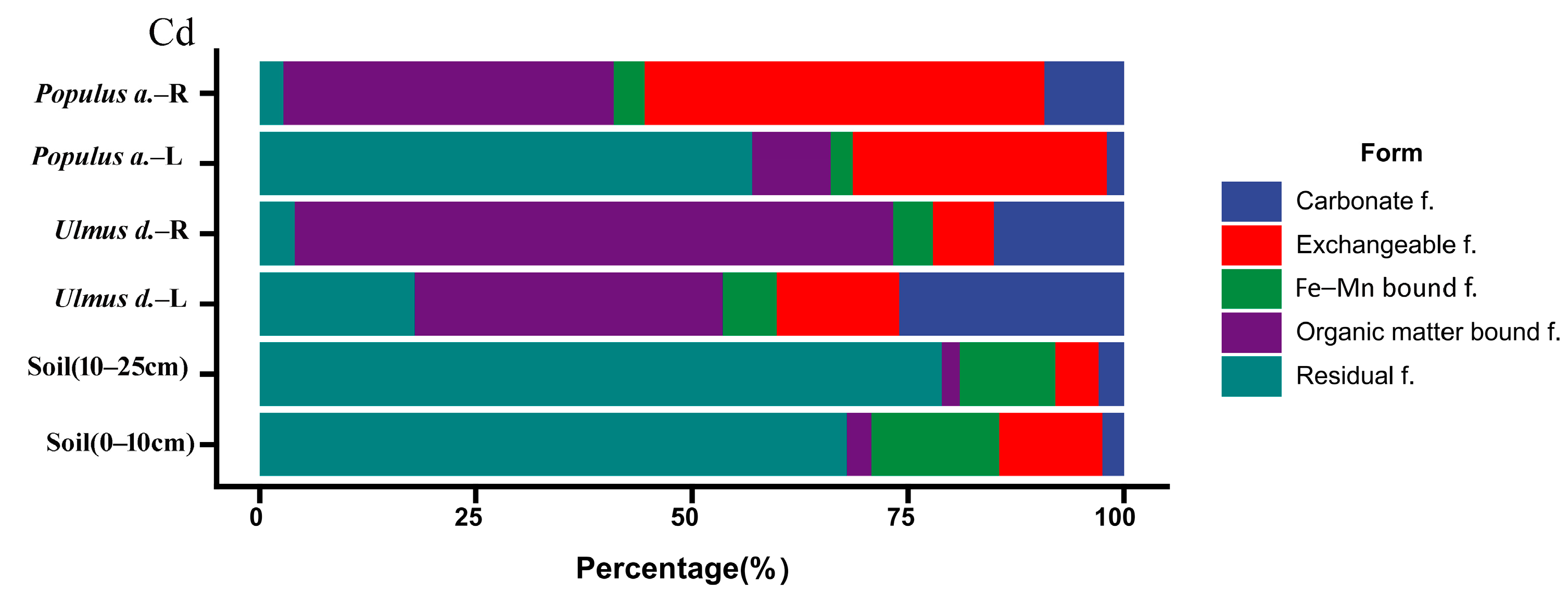 3.2. Interspecific Variation in Cd Speciation Transformation