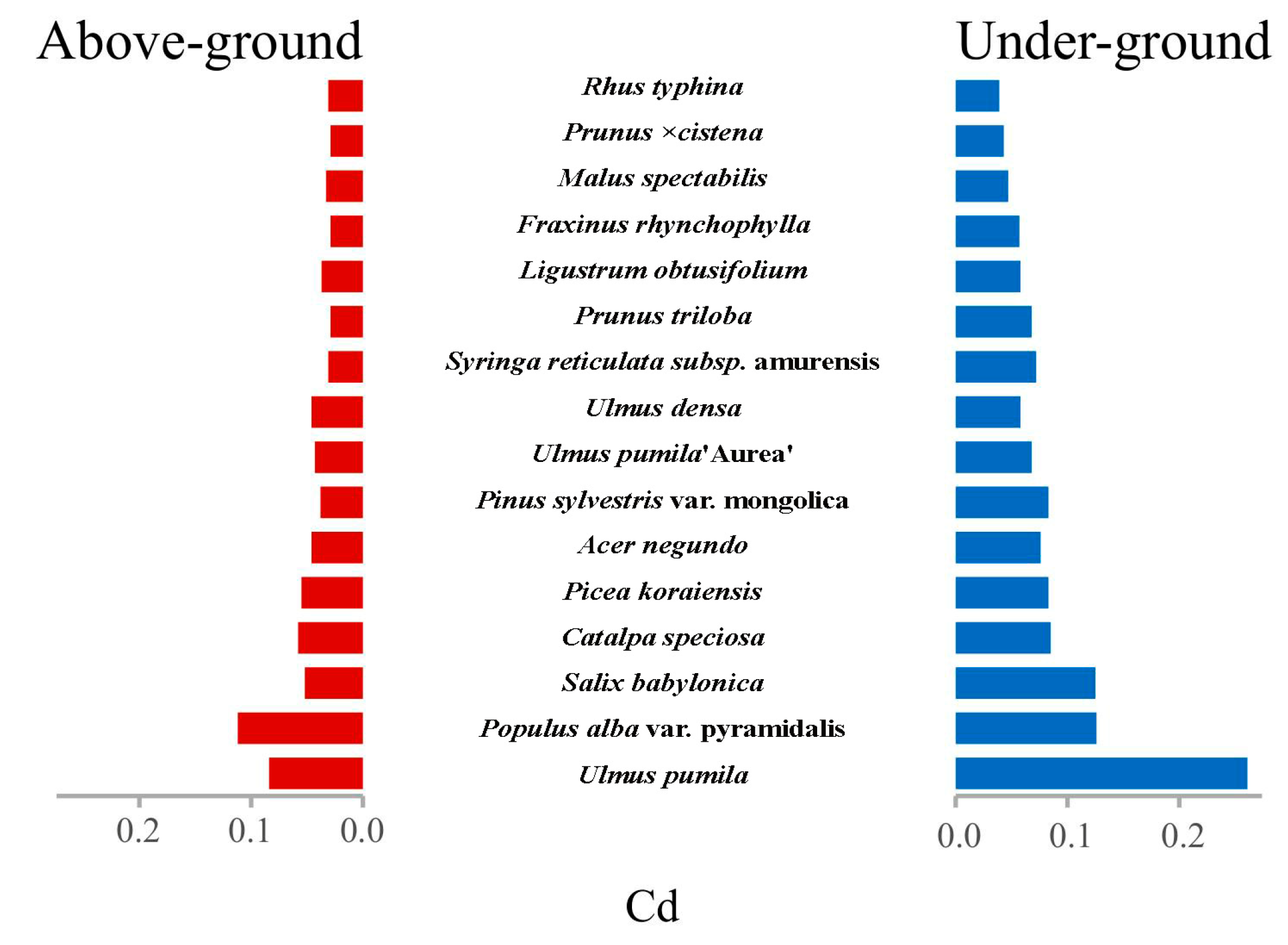 | Cd | Ulmus densa | 0.36 | Urumqi, in this article |
