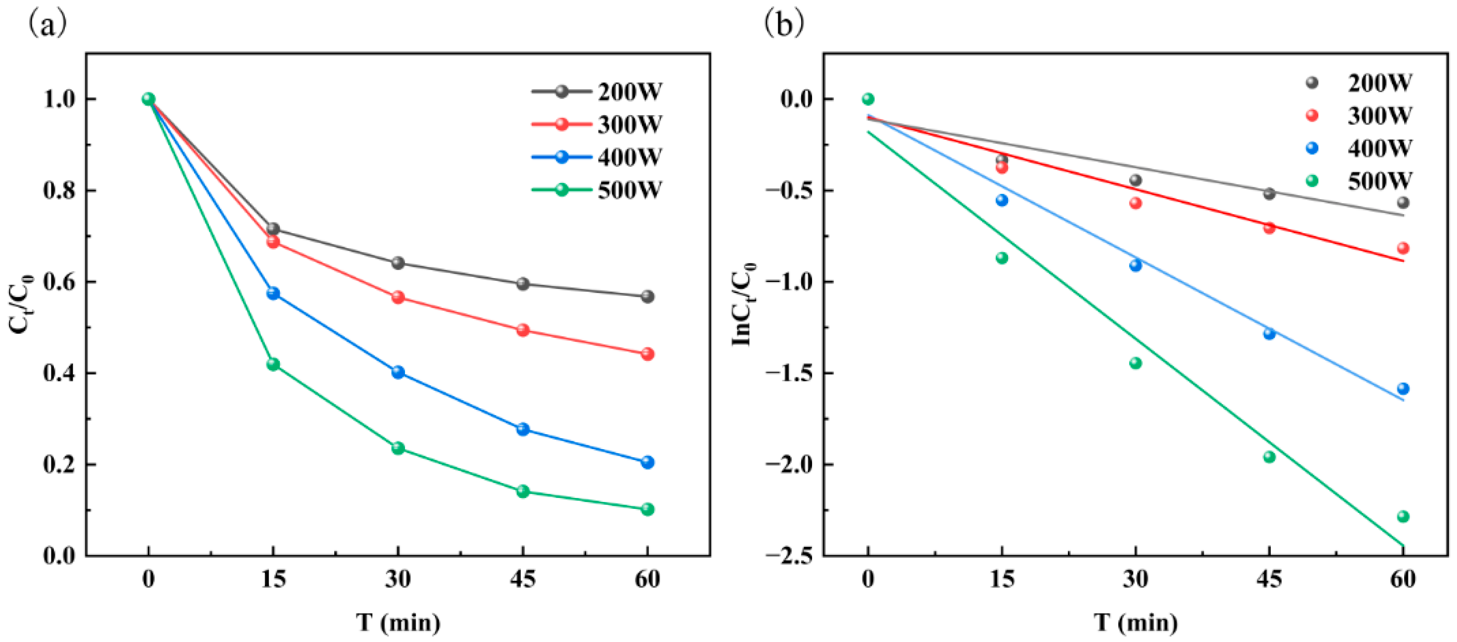- As the TC concentration increases, degradation becomes more challenging. Higher PAA dosage and greater light intensity promote the generation of reactive radicals (e.g., ·OH), thereby accelerating the degradation rate and improving removal efficiency.