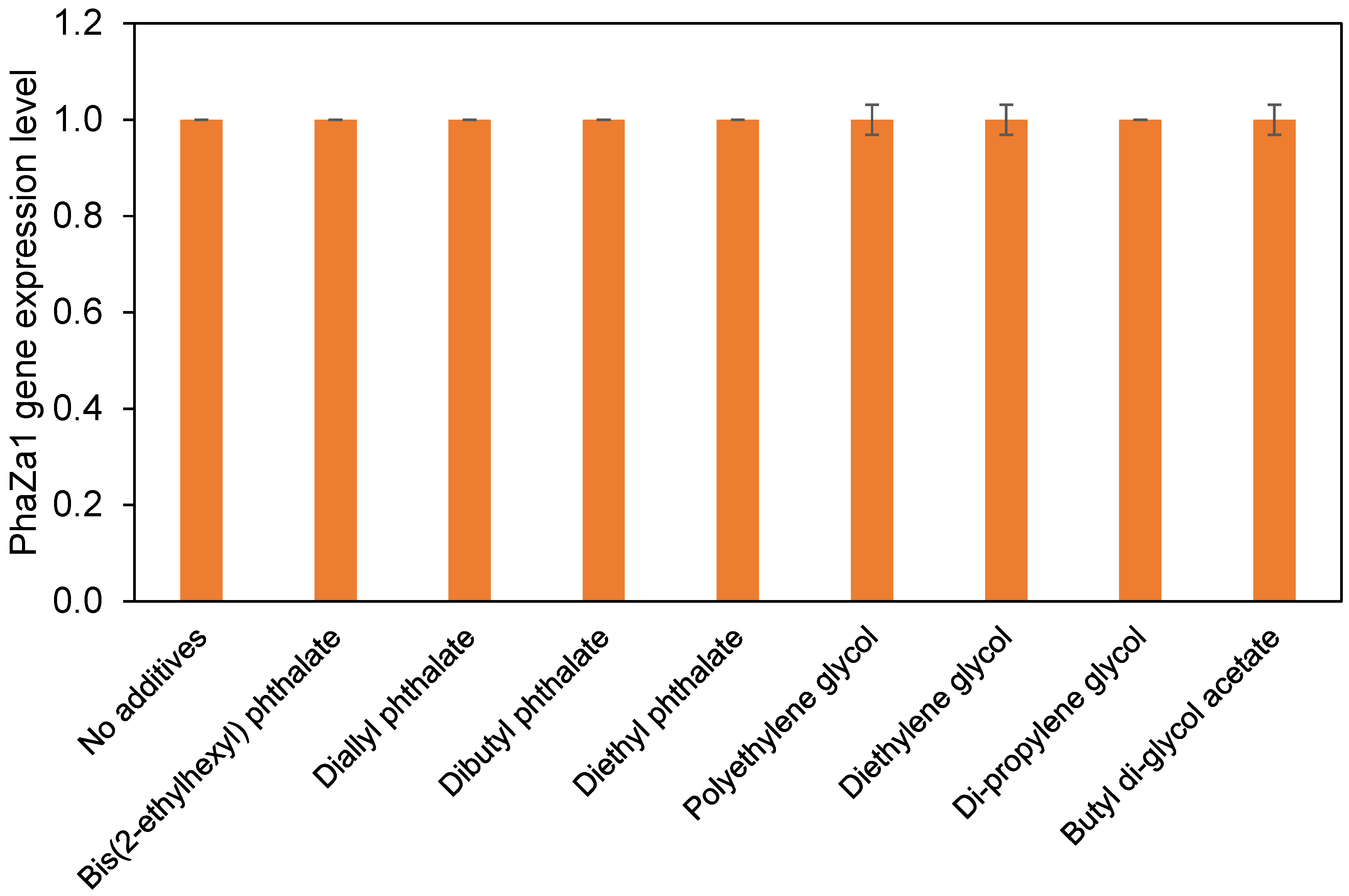 2.1. Real-Time PCR Analysis of phaZa1 Gene Expression in Ralstonia sp. C1 in the Presence of Phthalate- and Glycol-Based Additives