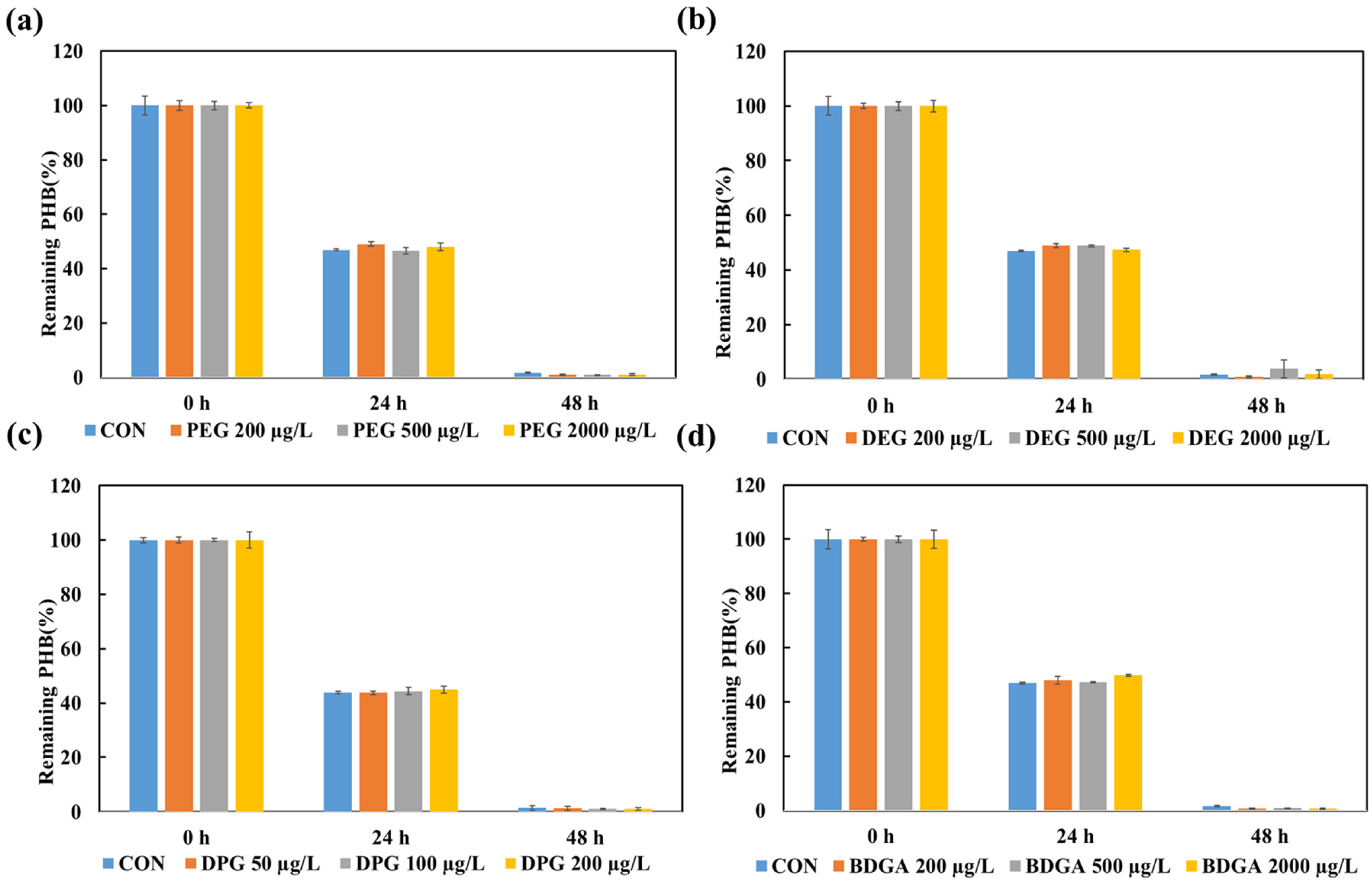 2.3. PHB Degradation Experiment and Measurement of Residual PHB Under Additive Conditions