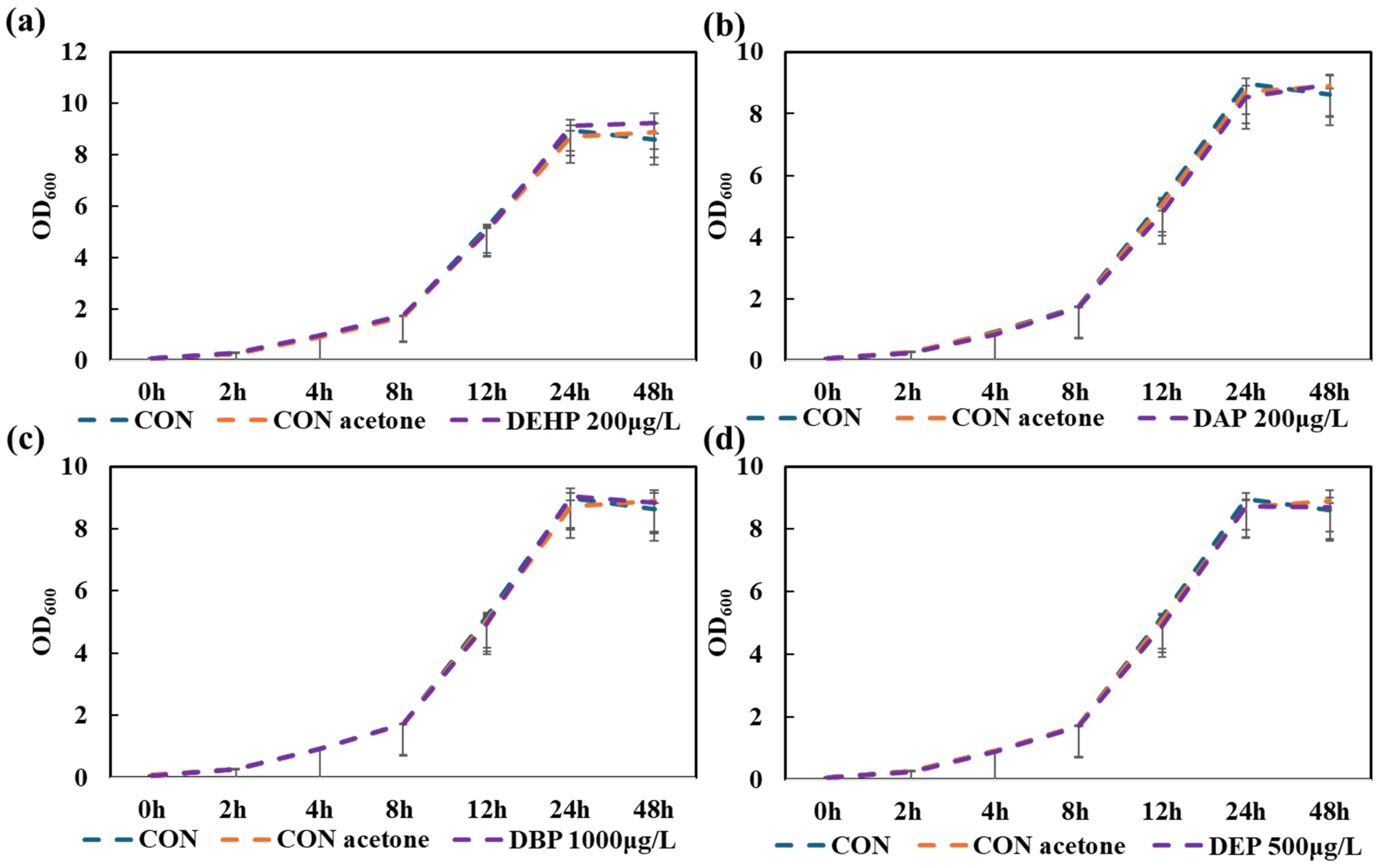 3.2.1. The Impact of Phthalate Ester Additives on Ralstonia sp. C1 Strain