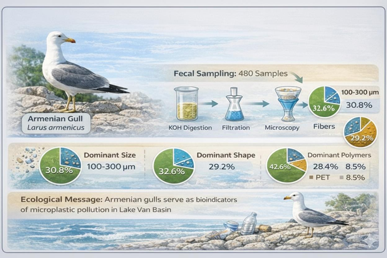 - Microplastics (MPs) were detected in Armenian gull feces across the Lake Van Basin.