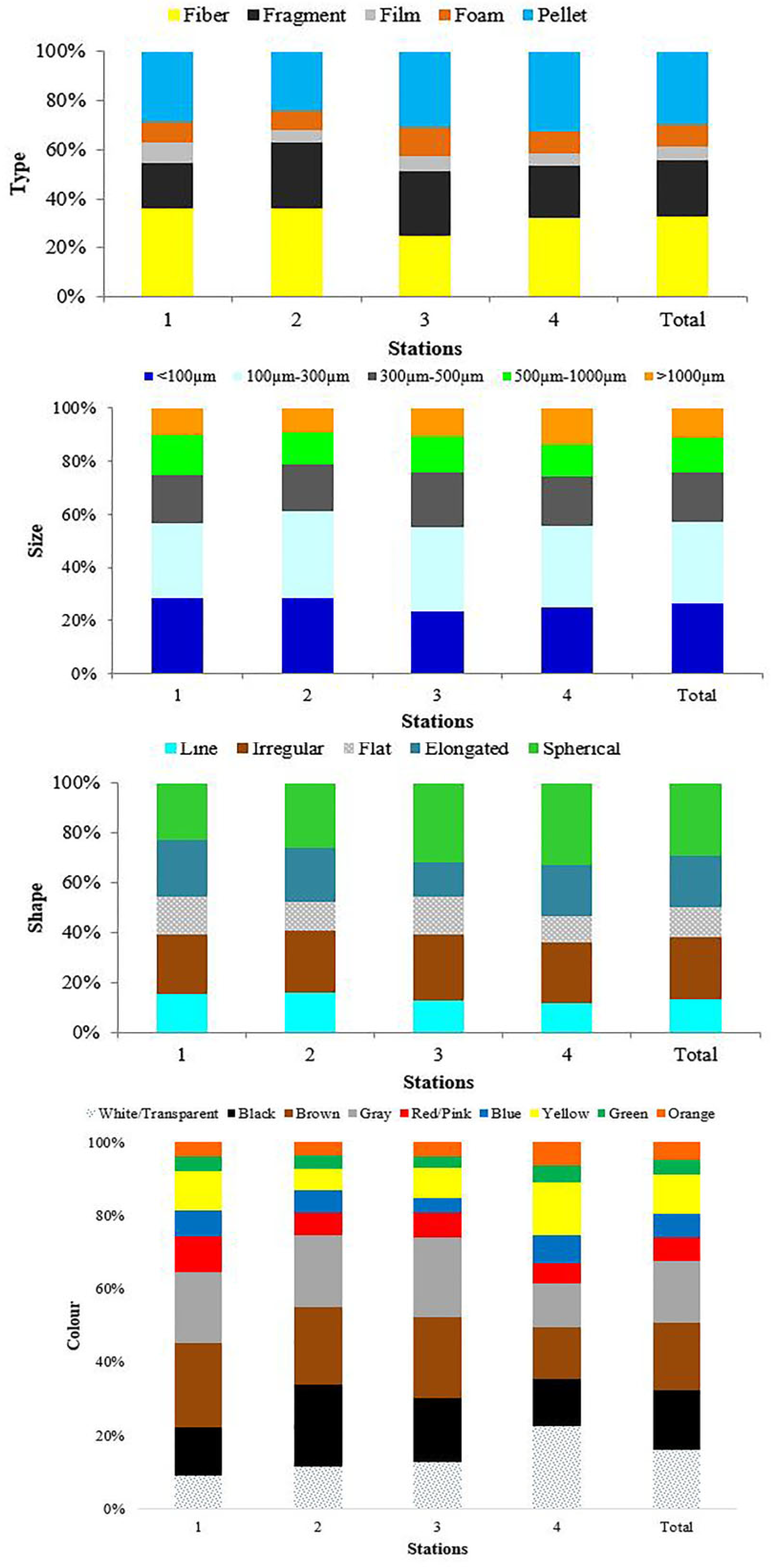 - Fibers predominated (32.6%); most particles were sized 100–300 µm.