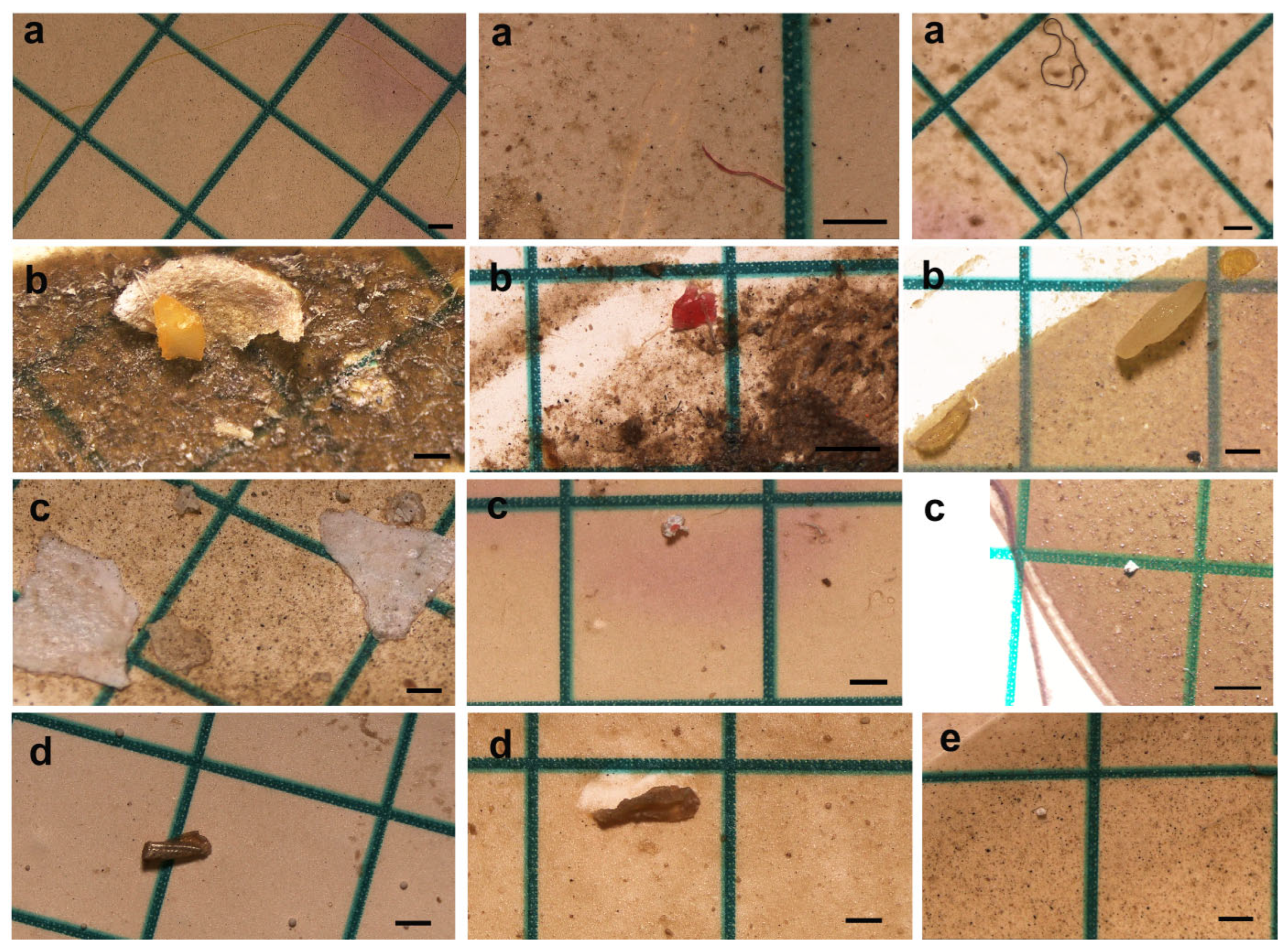 - Woodall, L.C.; Gwinnett, C.; Packer, M.; Thompson, R.C.; Robinson, L.F.; Paterson, G.L. Using a forensic science approach to minimize environmental contamination and to identify microfibres in marine sediments. Mar. Pollut. Bull. 2015, 95, 40–46. [Google Scholar] [CrossRef]