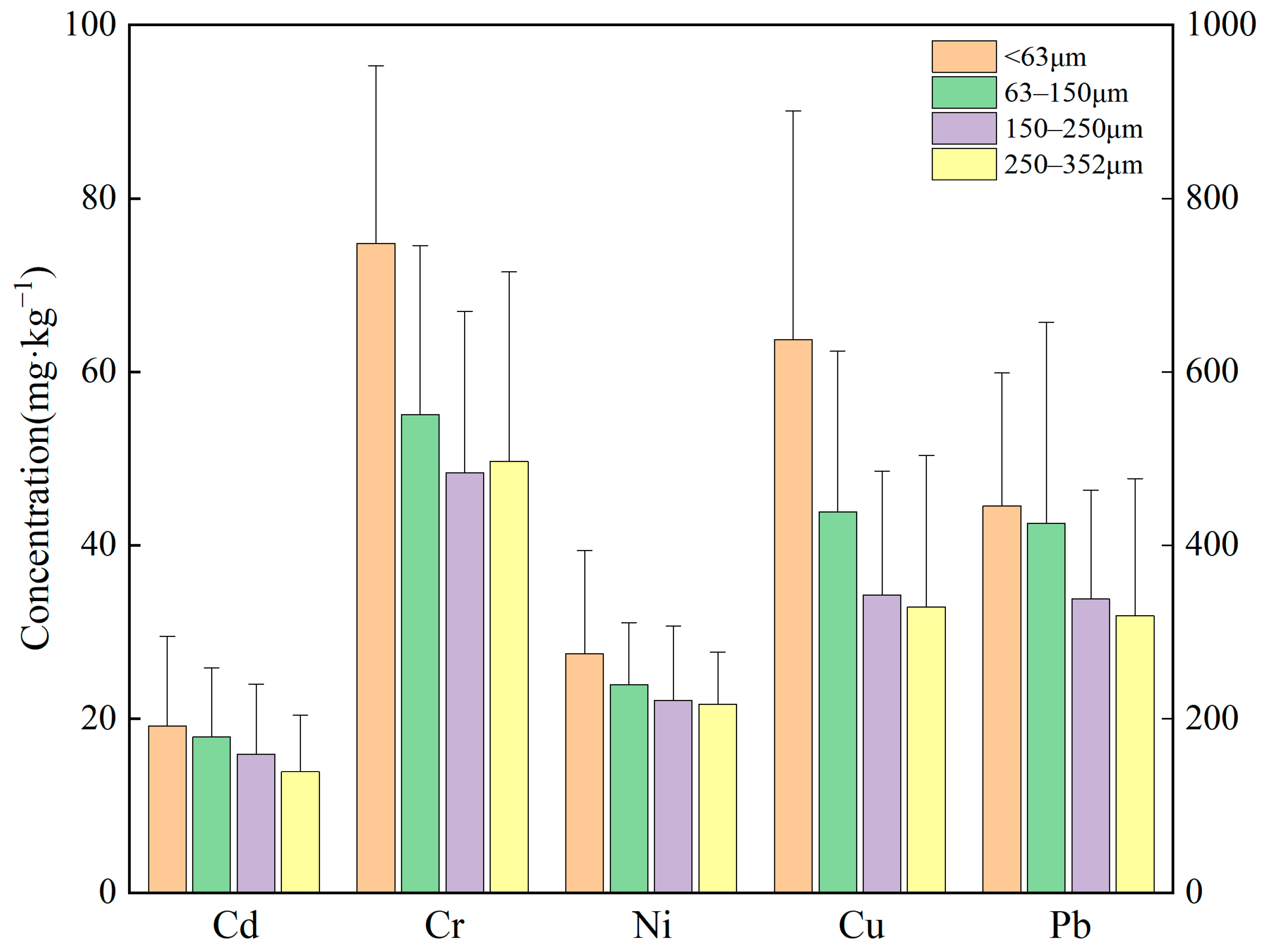 | Particle Sizes | Cd | Cr | Cu | Ni | Pb |