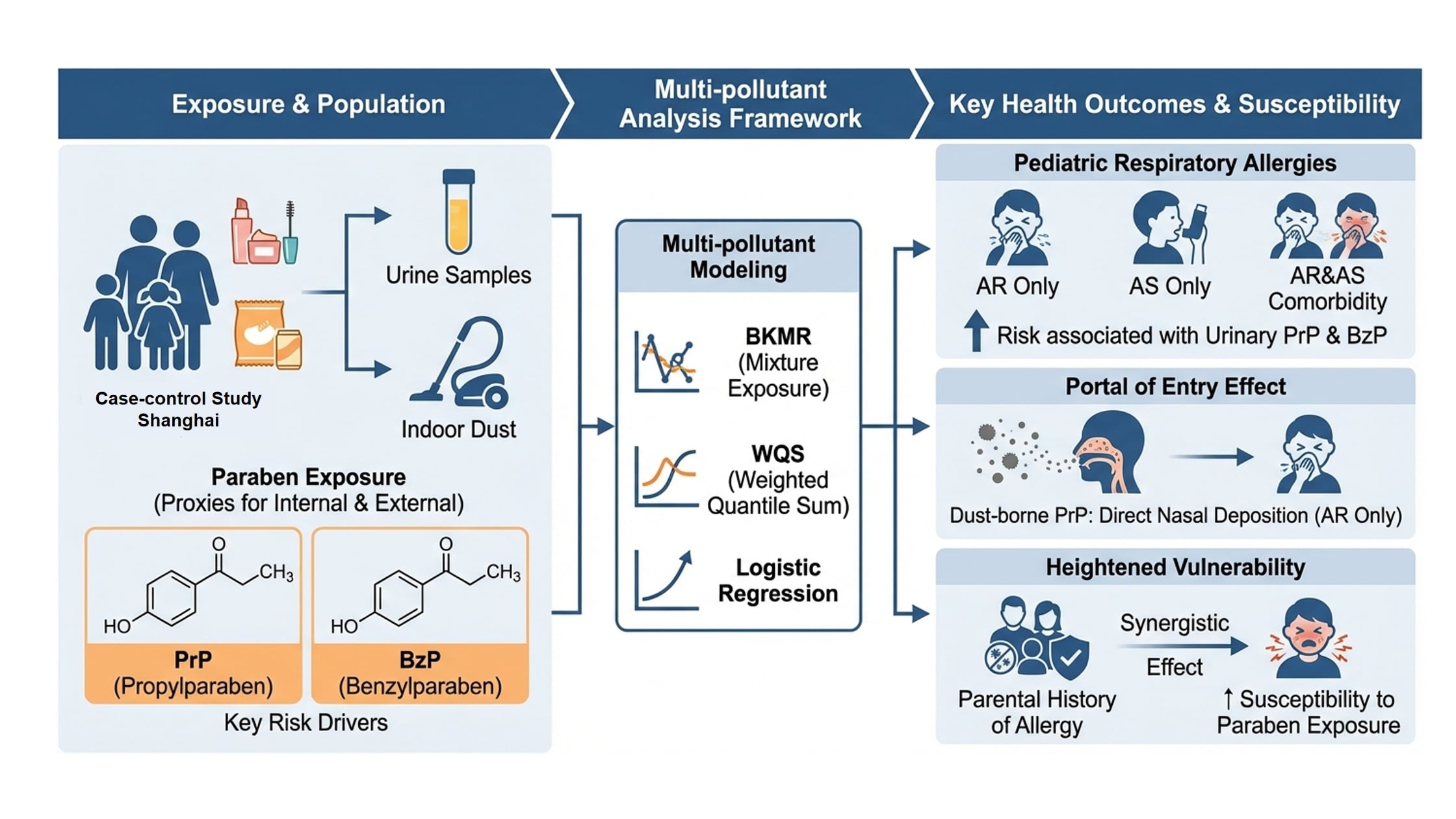 APA StyleZhu, Y., Du, S., Lin, Z., Li, Q., Tang, H., Niu, Z., Norbäck, D., Prapamontol, T., Sun, C., Li, J., & Zhao, Z. (2026). Exposure to Urinary and Dust Parabens: Compound-Specific Risks for Pediatric Respiratory Allergic Phenotypes. Toxics, 14(4), 281. https://doi.org/10.3390/toxics14040281