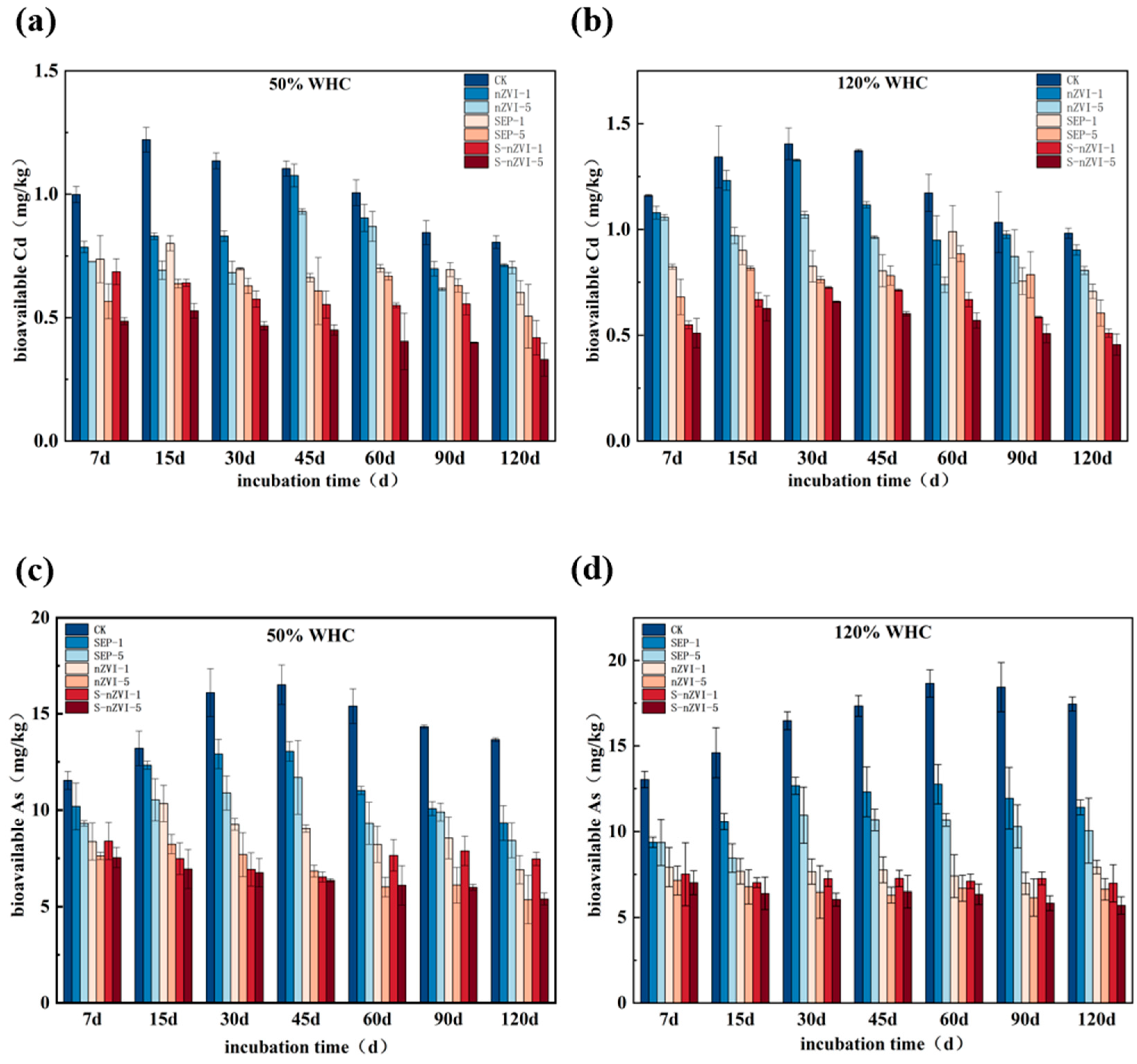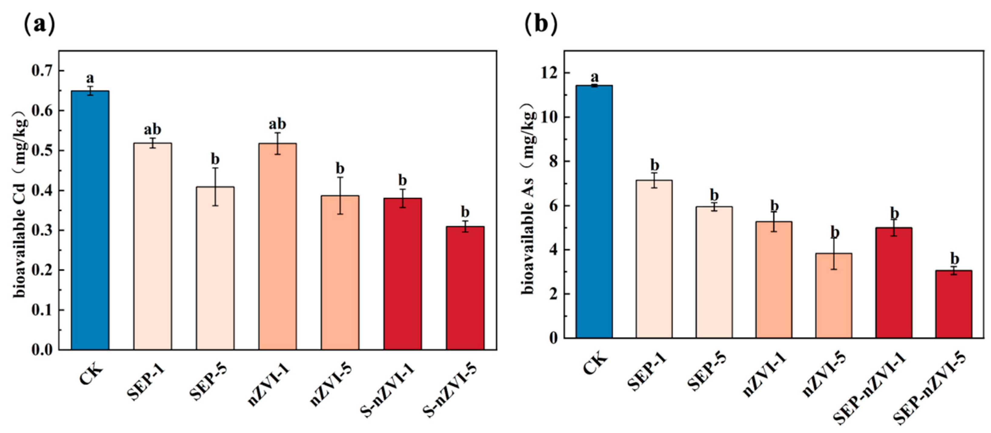 3.3. Effects on the Availability of Cd and As in the Soil