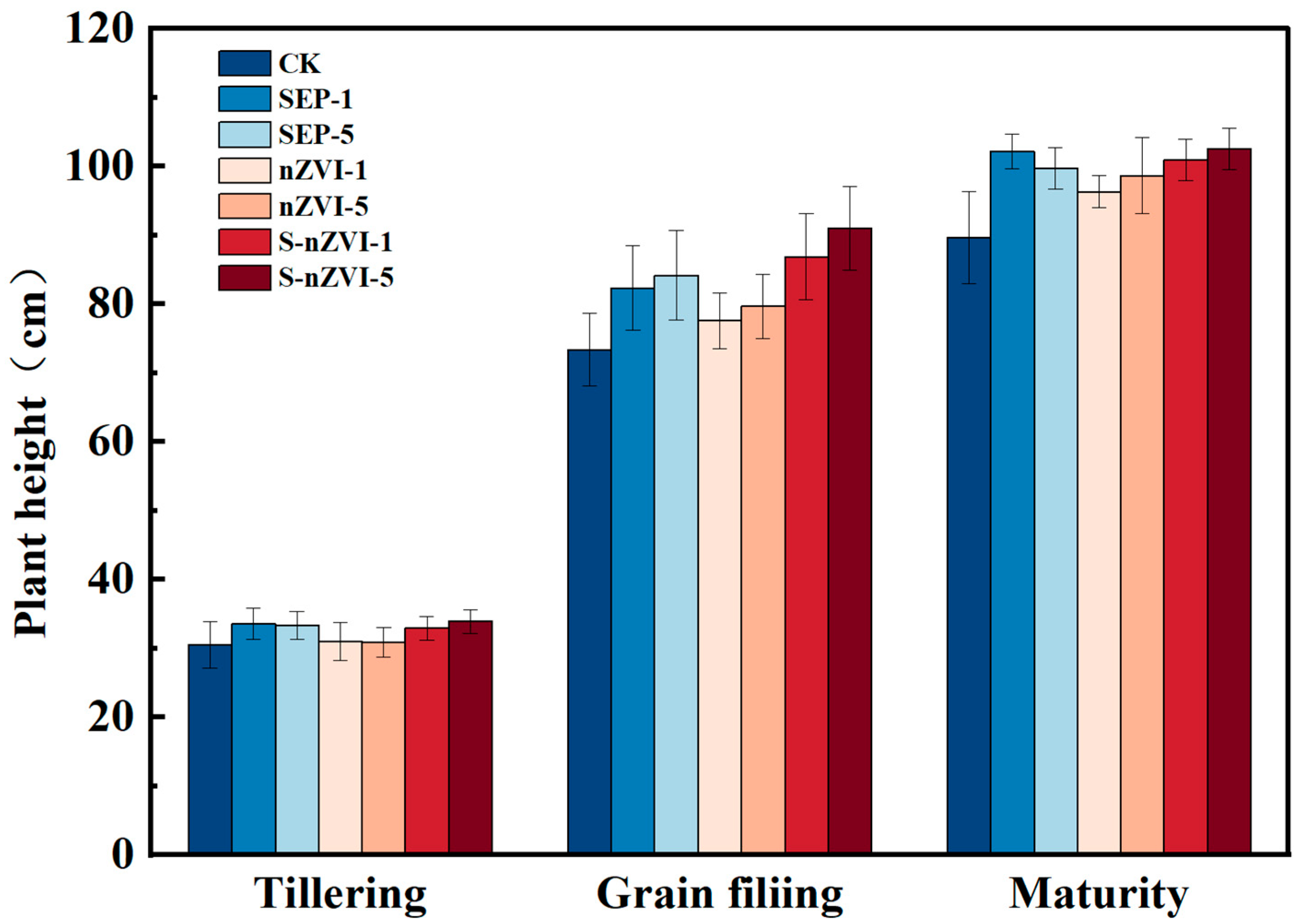 3.5. Effects on Rice Growth and Heavy Metal Accumulation