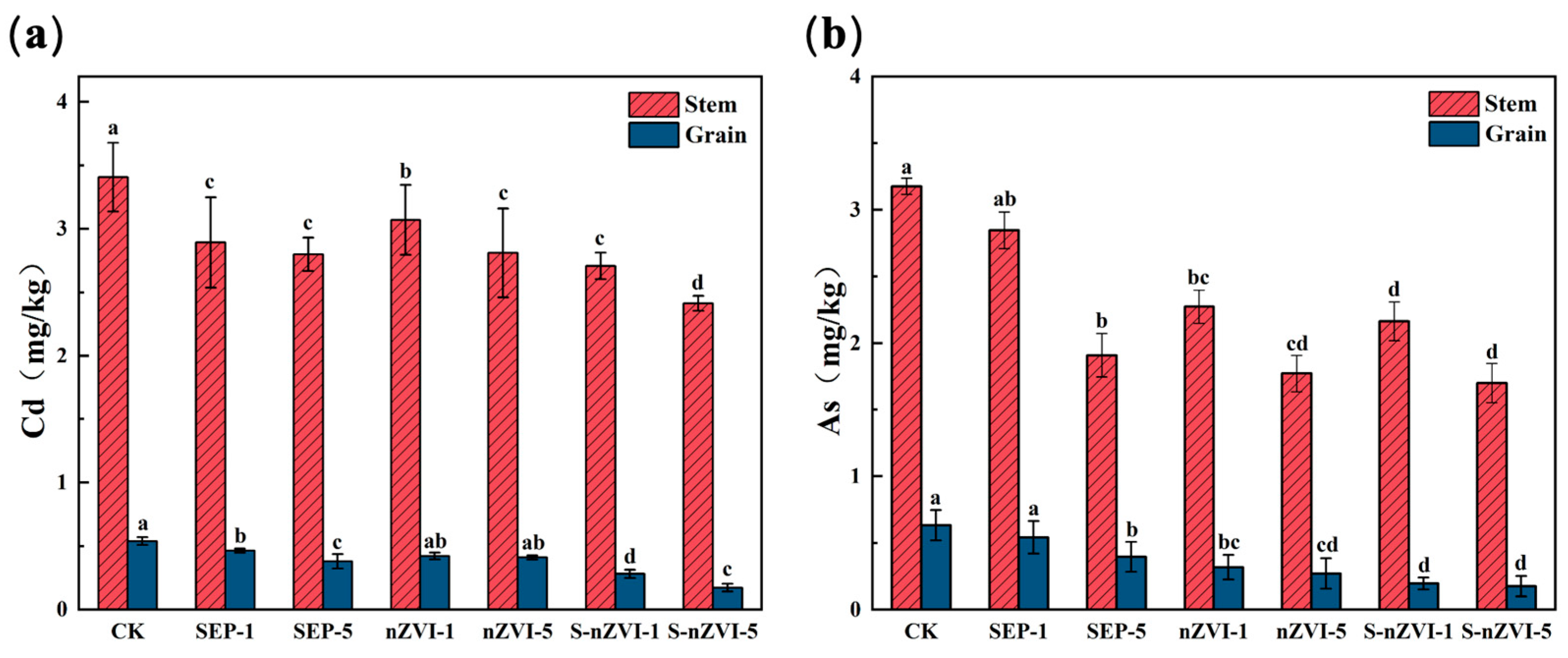 | Treatment | Stem Cd Enrichment Coefficient | Grain Cd Enrichment Coefficient | Stem As Enrichment Coefficient | Grain Cd Enrichment Coefficient |