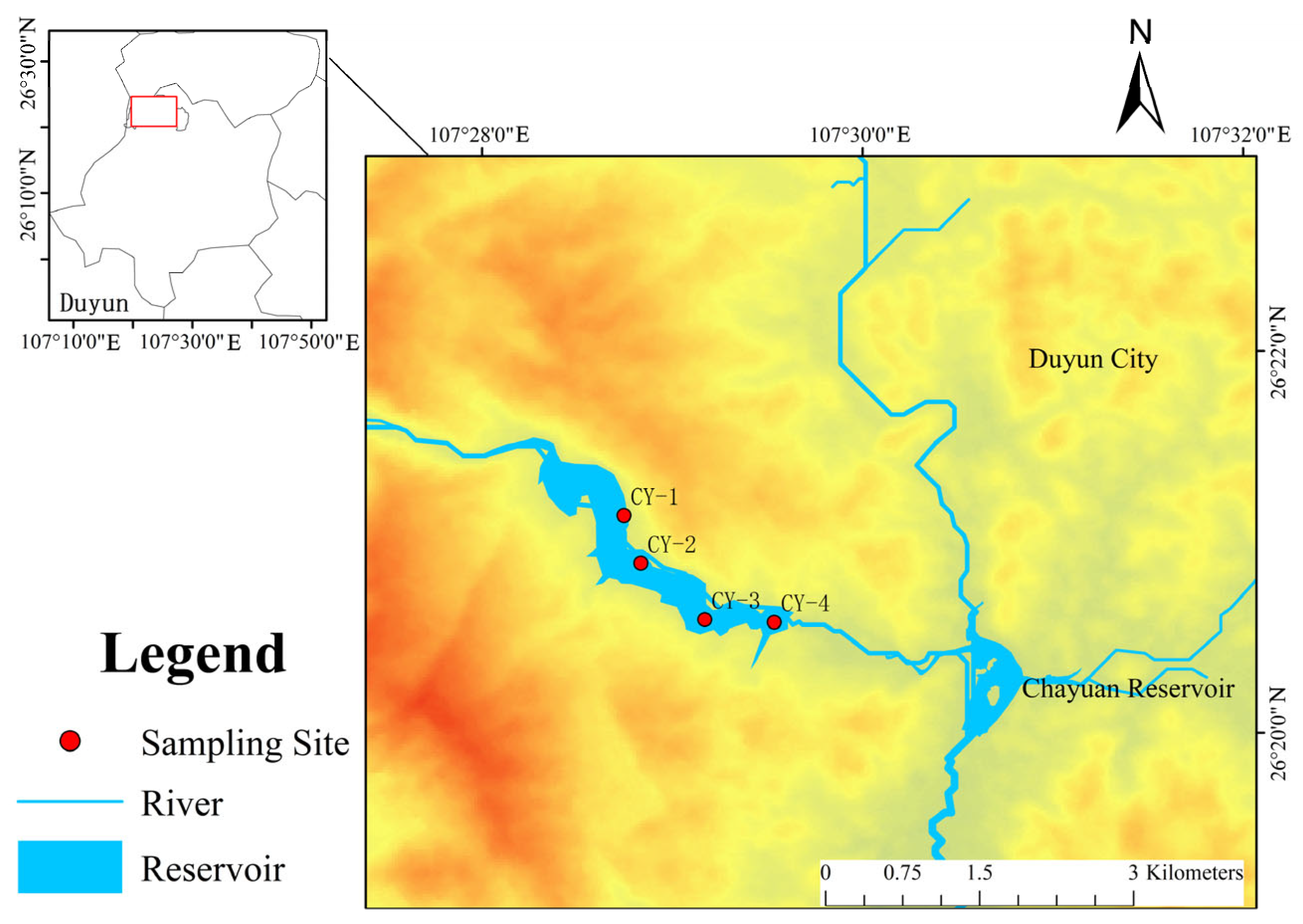 - Wu, J.; Wang, T.; Liu, T.; Liu, J.-J.; Xu, N.; Zeng, H.; He, L.-Y. Hydrochemical characteristics, evolution, and controlling factors of a karstic river with reservoirs: Insights from spatial-temporal analysis. J. Environ. Sci. 2026, 159, 108–119. [Google Scholar] [CrossRef]